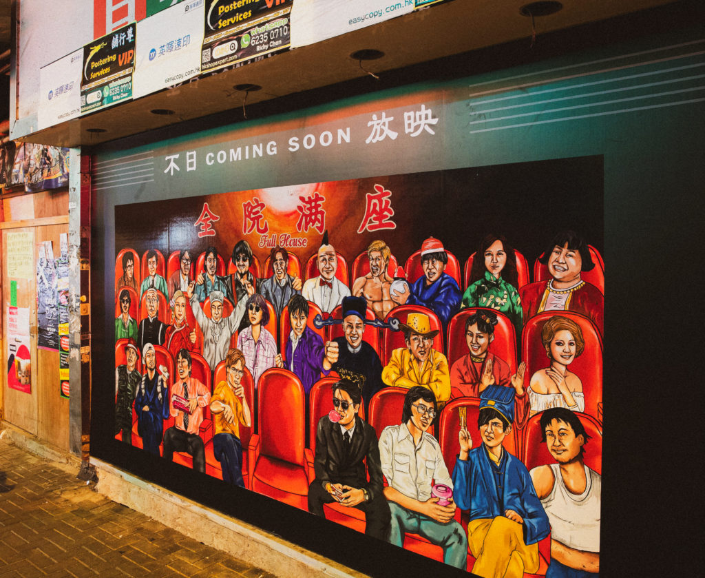 陪伴幾代人成長的北角皇都戲院,近日發現《喜劇之王》尹天仇、《家有囍事》程大嫂、林亞珍等多個港產片經典角色的身影 —— 原來是本土 90 後藝術家NoPaperStudio 創辦人林嘉恒專為「尋找你我他的皇都」展覽手繪的「全院滿座」大型海報,29 個經典港產片角色排排坐,而中間第 30 個座位則留給觀眾,讓你與他們同場看齣好戲。