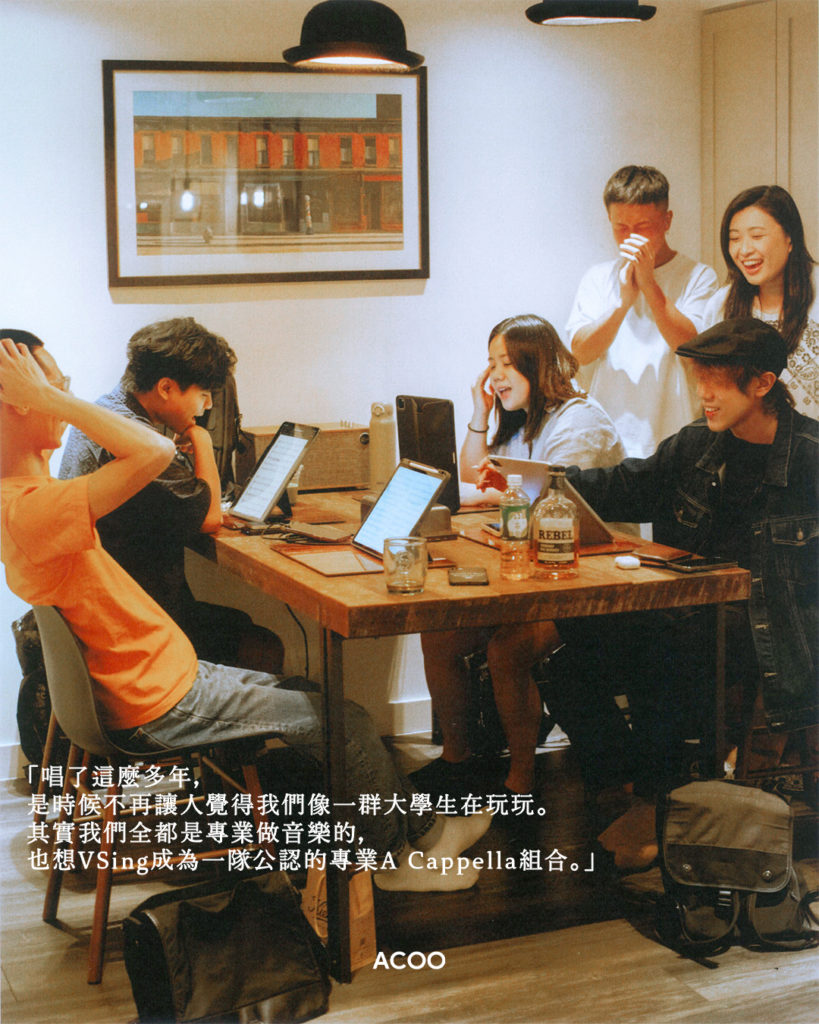當然,VSing的音樂路上,不盡是甜蜜與歡笑。要從奔波日程中擠出時間練習,已不是易事;同時,他們更要處理團隊的營運瑣事,從策劃、演出到宣傳,都是團員們一手包辦。「因為我們沒簽唱片公司,運作上全都是自己來。」例如Anna主要負責寫歌、編曲,Sharon負責主理Instagram帳戶的宣傳帖文,其他成員則紛紛笑稱自己是「打雜」,負責「掃地」、「買酒」。