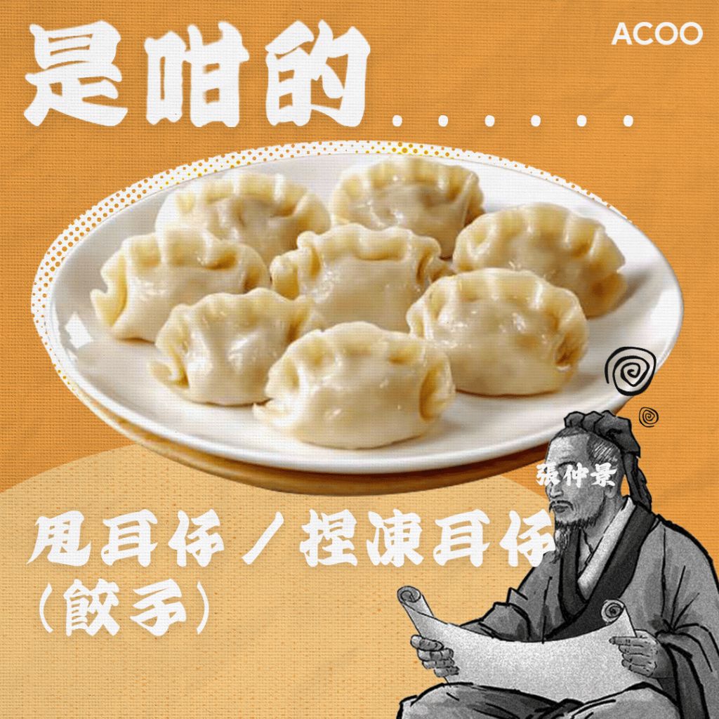 東漢末年時,有一醫學家張仲景任長沙太守,在他告老還鄉時剛巧是大雪紛飛的冬天,回鄉路上看到很多百姓被凍得耳朵也受傷,便命其弟子搭醫棚,用羊肉、辣椒等驅寒食材煮熟再剁碎,再裹在麵包中,並捏成「耳仔」模樣回鍋煮,當日稱之為「驅寒矯耳湯」。吃罷,大家都感到身體變暖,耳朵受傷情況亦有改善,便每年冬至也會煮這道菜來吃,更有話說「吃了冬至餃子不凍人」,或是冬至不吃餃子便會凍甩耳朵。