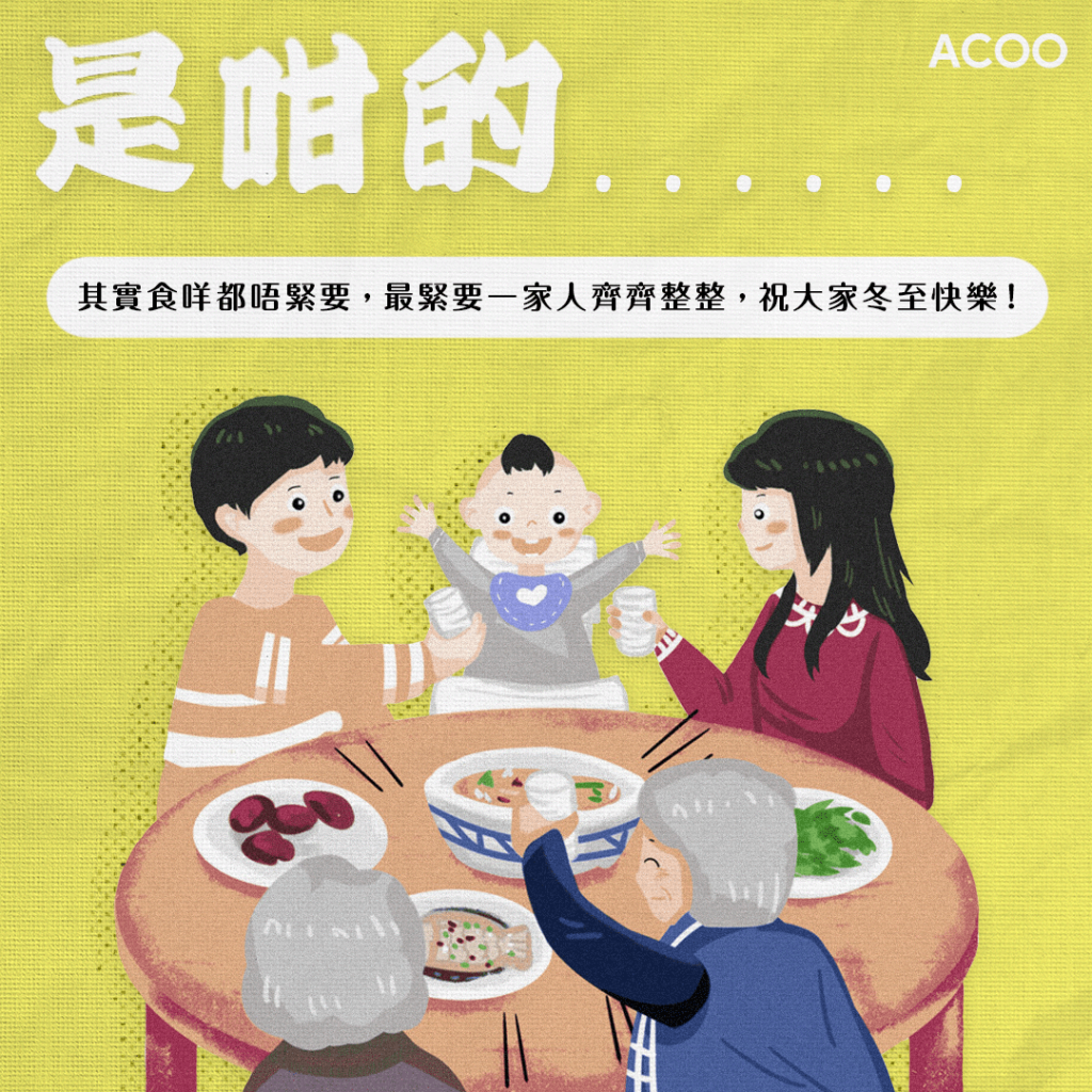 其實,不論是哪一個傳說,內容也是祈求自己與家人的平安、健康和團圓。在今天的香港,也祝願大家能與家人團圓共享天倫;即使分隔兩地,亦能早日團聚,吃一頓溫暖的冬至飯。