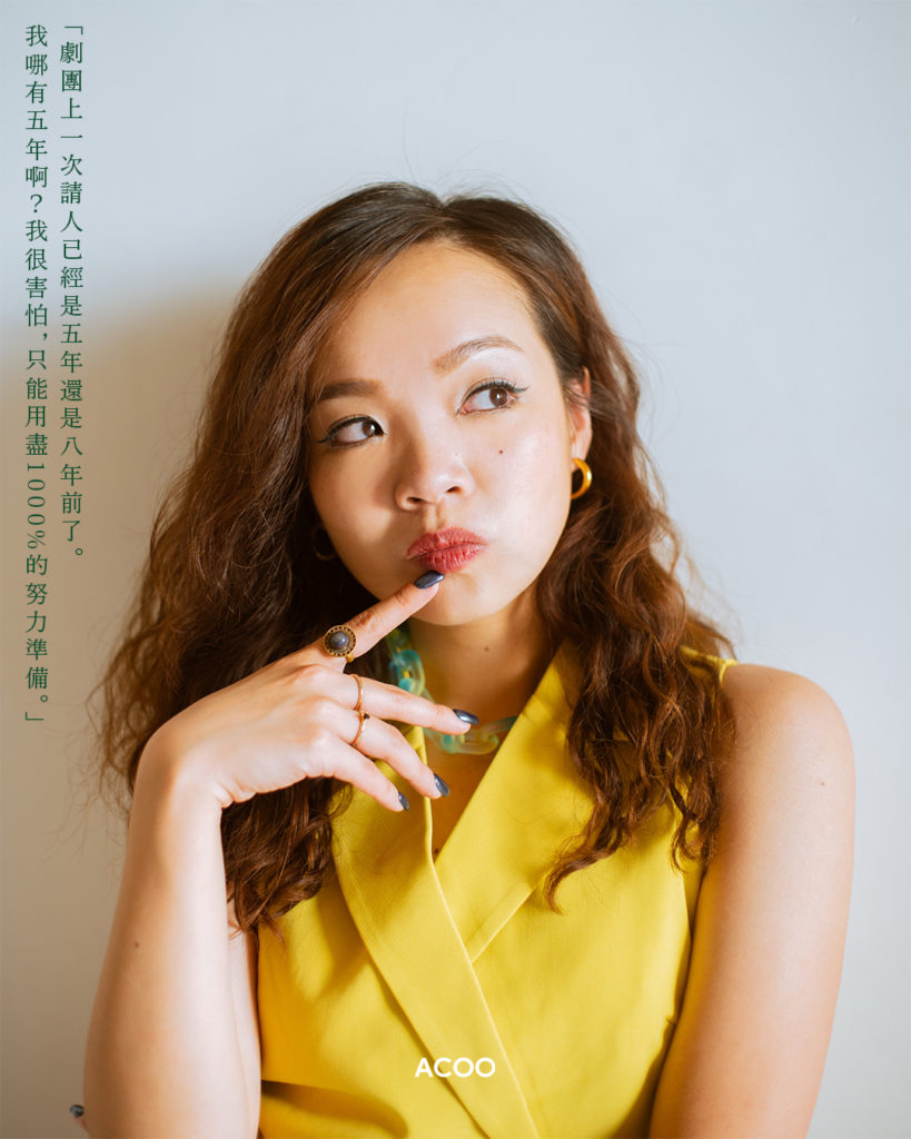對演員來說,遴選失敗實屬必經之路。「即使是在劇團裏,也會經歷遴選失敗的過程。」事實上,不管是後來作為自由業者,抑或駐團演員,她都不可能總得到想要的角色。然而,「哪怕最後得到的角色不是最想要的,也要用表現證明:我做得到。」