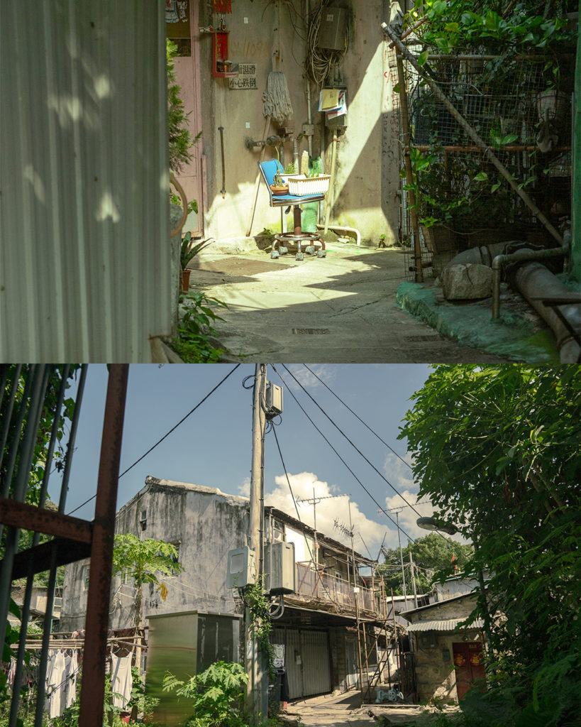 村內的小路四通八達、寬窄不一,就像是走進迷宮一般,彷彿墮進鬧市中的異世界。不知道誰家的貓咪在路上溜躂、又躺在某家門前乘涼;又有狗隻嗅到外來者的氣味,不惜拉緊鎖在頸中的項鏈,也衝到閘門前高聲吠叫,讓人們不得不加快腳步離開。又,偶爾也會看到一些村民的家門大開,屋內都是昏昏暗暗的,也許是想分享一點炎夏的陽光,或使屋內空氣流通一點。