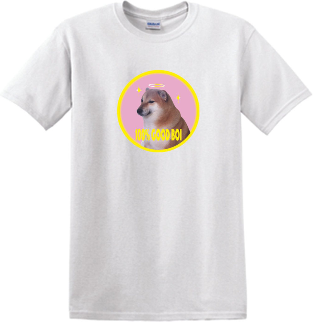憑着可愛又弱弱的表情,波子有不少 fans,主人 Kathy 也藉此為動物界出一分力,推出波子樣貌的 t-shirt、帽、聖誕卡等周邊商品,其中「 100% Good Boi T-shirt」的全數收益,包括製造成本都會捐贈至本地機構 LAP Lifelong Animal Protection Charity,「希望讓世界變得更快樂!」