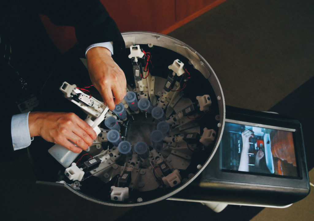 多啦A夢都未有的法寶(除非他有),竟然被日本明治大學校授發明了!宮下芳明教授花近一年發明名為「 Taste-the-TV」的「有味電視機」,配備 10 款風味噴劑和覆蓋螢幕的膠片,會根據不同食物味道及用家指示,透過高壓噴嘴自動噴到膠片上,而觀眾只要舔一舔膠片,便可以品嚐電視機裏的味道。