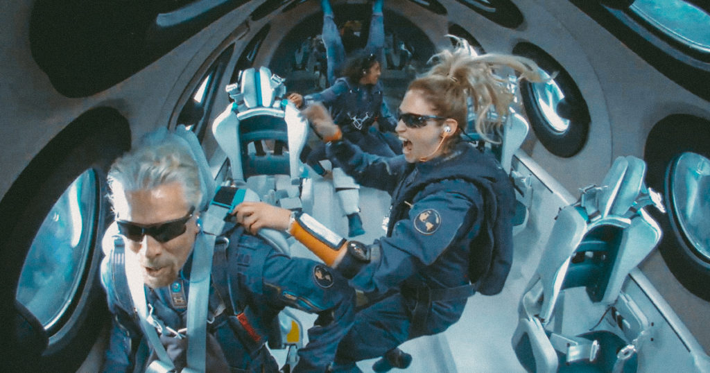 從布蘭森分享的影片中可見到他在機艙往外見到地球邊緣的景象,他感性地說了一段話:「獻給在下面的所有孩子,我曾是一個懷有夢想的小孩,看着星星;現在,我是個在太空船內的大人,和許多很棒的大人在一起,俯瞰我們美麗、美麗的地球。獻給下一代的夢想家。如果我們能做到,想像你也能做到。」