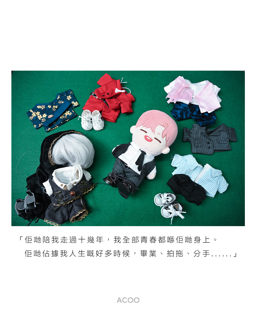 Fish對戀愛死心,姜丹尼爾成了她的「戀愛寄託」。她無法緊緊跟隨偶像步伐到處走,只好一次又一次重看他的MV、綜藝節目,買遍Daniel的所有專輯、小卡。她又買了一隻粉紅色頭髮的Daniel玩偶,再為他添置6、7套衣物,到處帶它到粉絲們舉辦的應援banner、燈箱廣告打卡,「呢個係打歌服;呢個係韓服,質地真係好舒服!仲有一頂帽;呢個吸血鬼,有頂假髮。」她興高采烈地介紹。