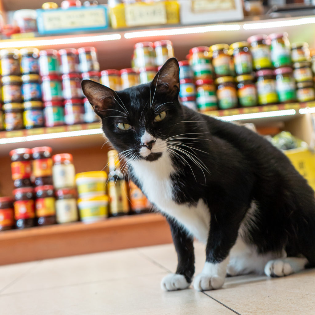 我們經過一間位於九龍城市政大樓外的海味舖,在門口瞥見內裏有兩隻貓躺在地下撒嬌,老闆見到我們在門前駐步,親切地邀請我們進來跟牠們玩,「牠們很親人的,不會咬人,你看!開始嗲你了。」一黑一黃的小黑和小黃一如老闆所言,極之親人,不停向我討摸和撒嬌。