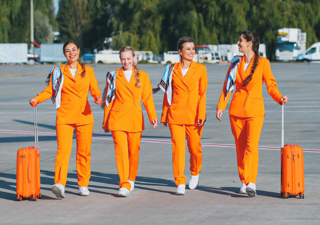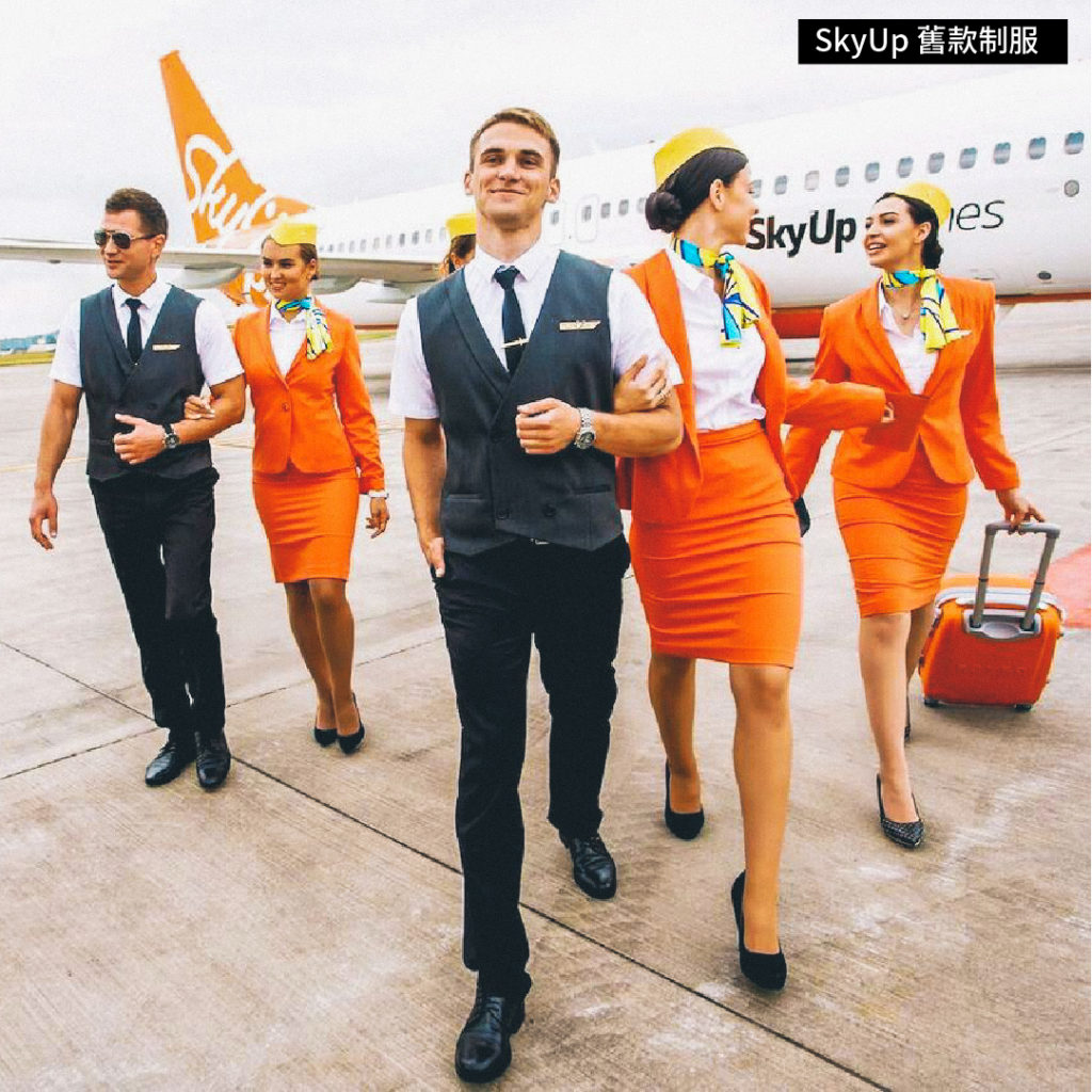 最美的空姐制服經常引起討論,花落誰家也時常不一樣。但要數最舒服的制服,烏克蘭航空公司 SkyUp 一定榜上有名。SkyUp 在搜集空中服務員對制服的意見後發現,空姐並不喜歡貼身的衫裙和高跟鞋,因此決定來個制服大改革 —— 空姐制服改為橙色西裝、絲巾、白色 T 恤、長褲、Nike 白波鞋,而空少則由馬甲背心,轉為輕薄的西裝外套配白色 T 恤,皮鞋也改為 Nike 黑色波鞋。