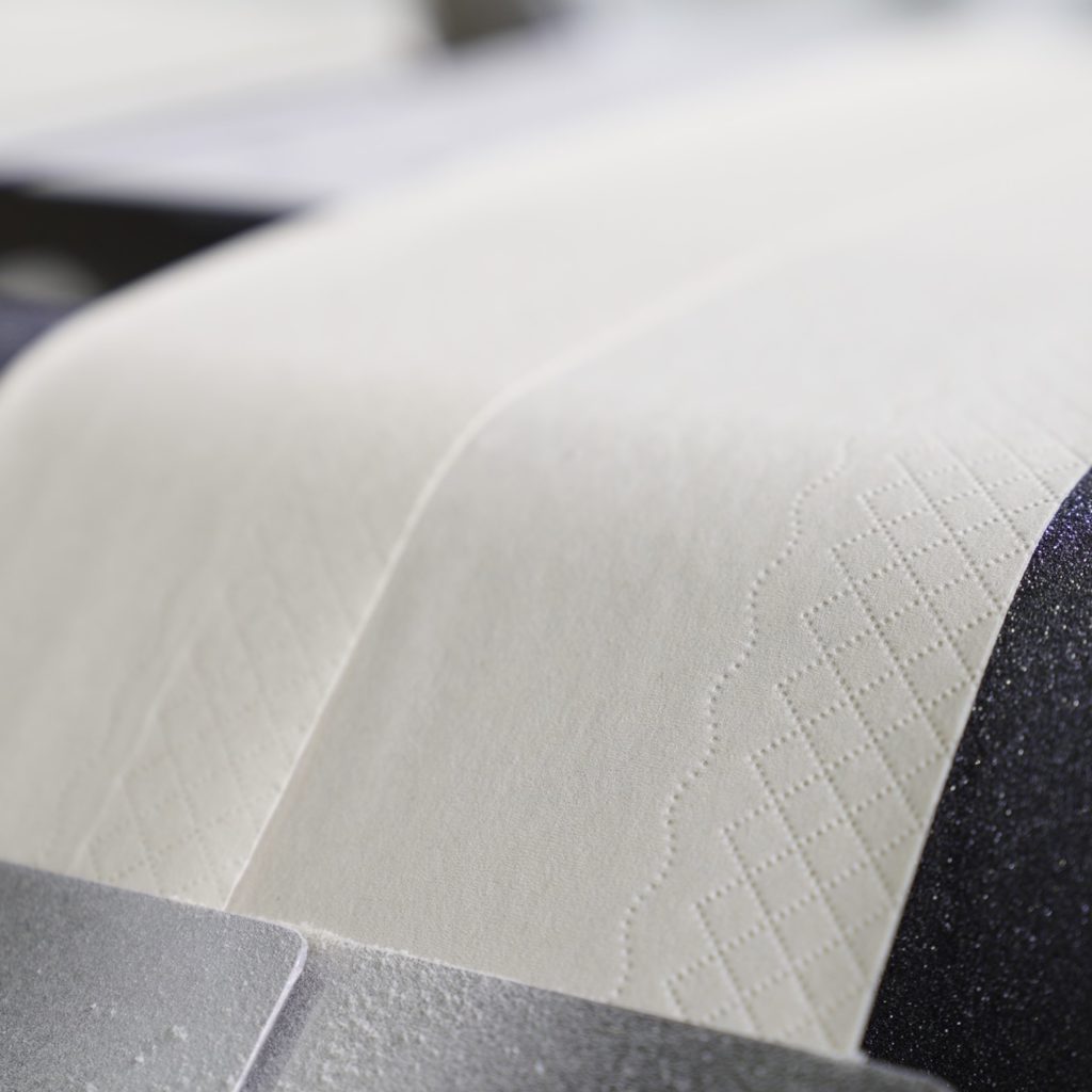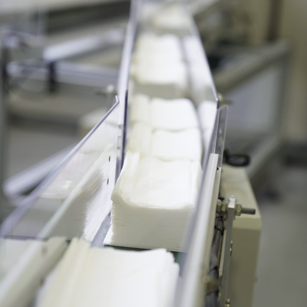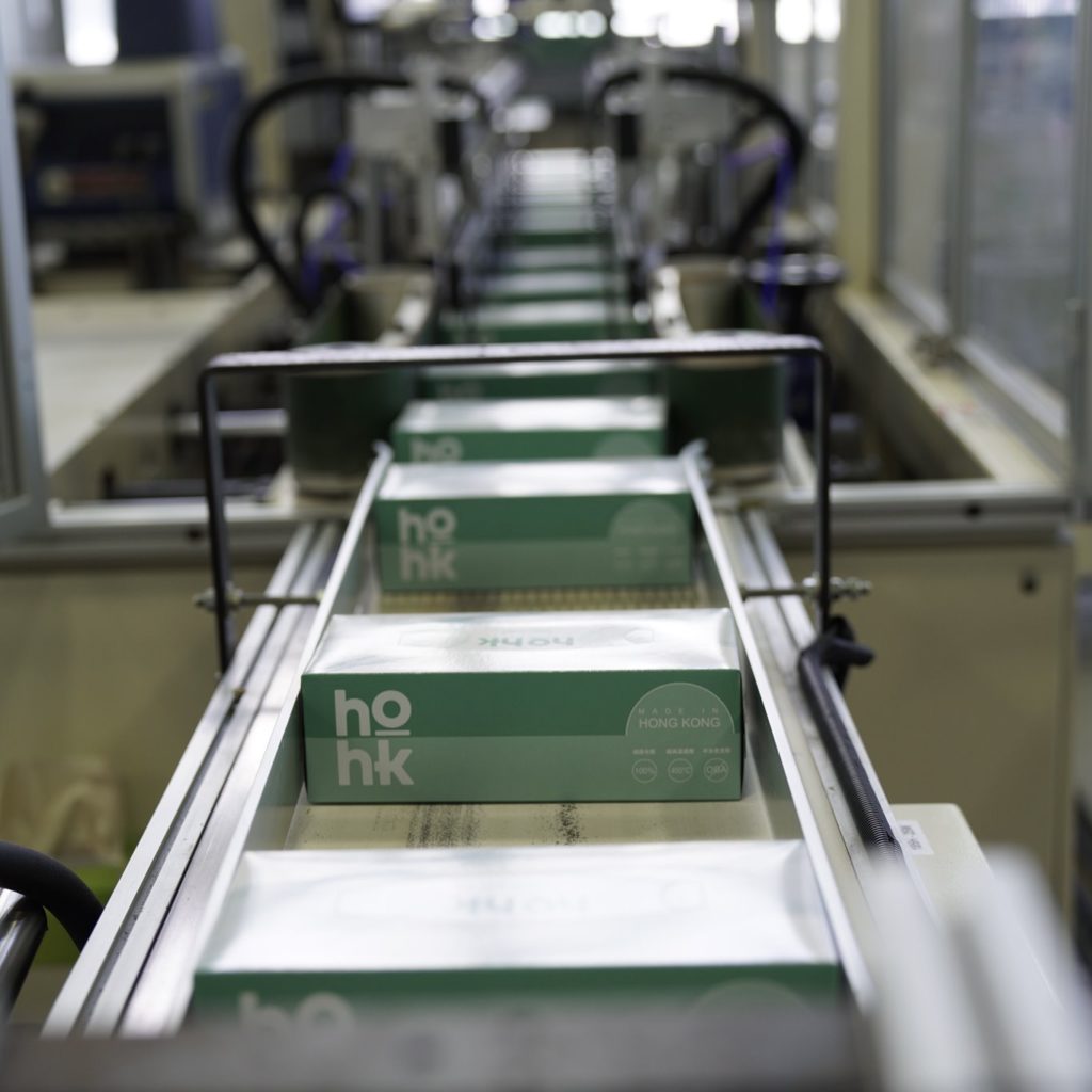 Kenneth 80年代已在火炭設紙巾廠,後來為控制成本到內地發展。疫情期間反而回港開拓紙巾事務,用了一年籌備,投資過千萬,在將軍澳工業區買機器、設廠房,以自動化生產線,應付日常工序:擠壓紙漿水份、熨壓、切割和包裝等。而團隊則負責管理生產系統及原材料選材。現時原紙生產供應選用了在世界各地不同的供應商,以免貨源單一化。