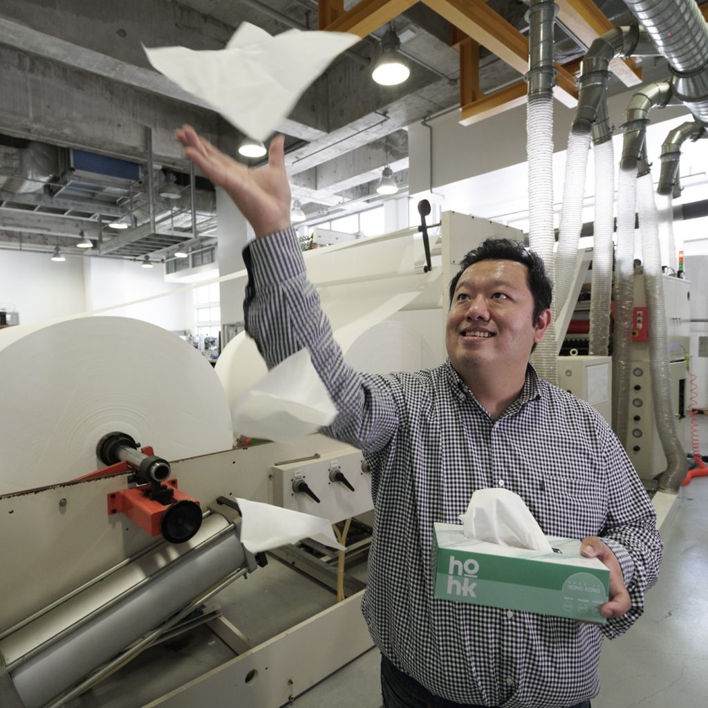 再造紙巾在香港越趨普及,但都是從外地入口。擁有40年生產紙巾經驗的Kenneth,在將軍澳設廠,做「香港製造」的紙巾,希望給予香港人多一個選擇。