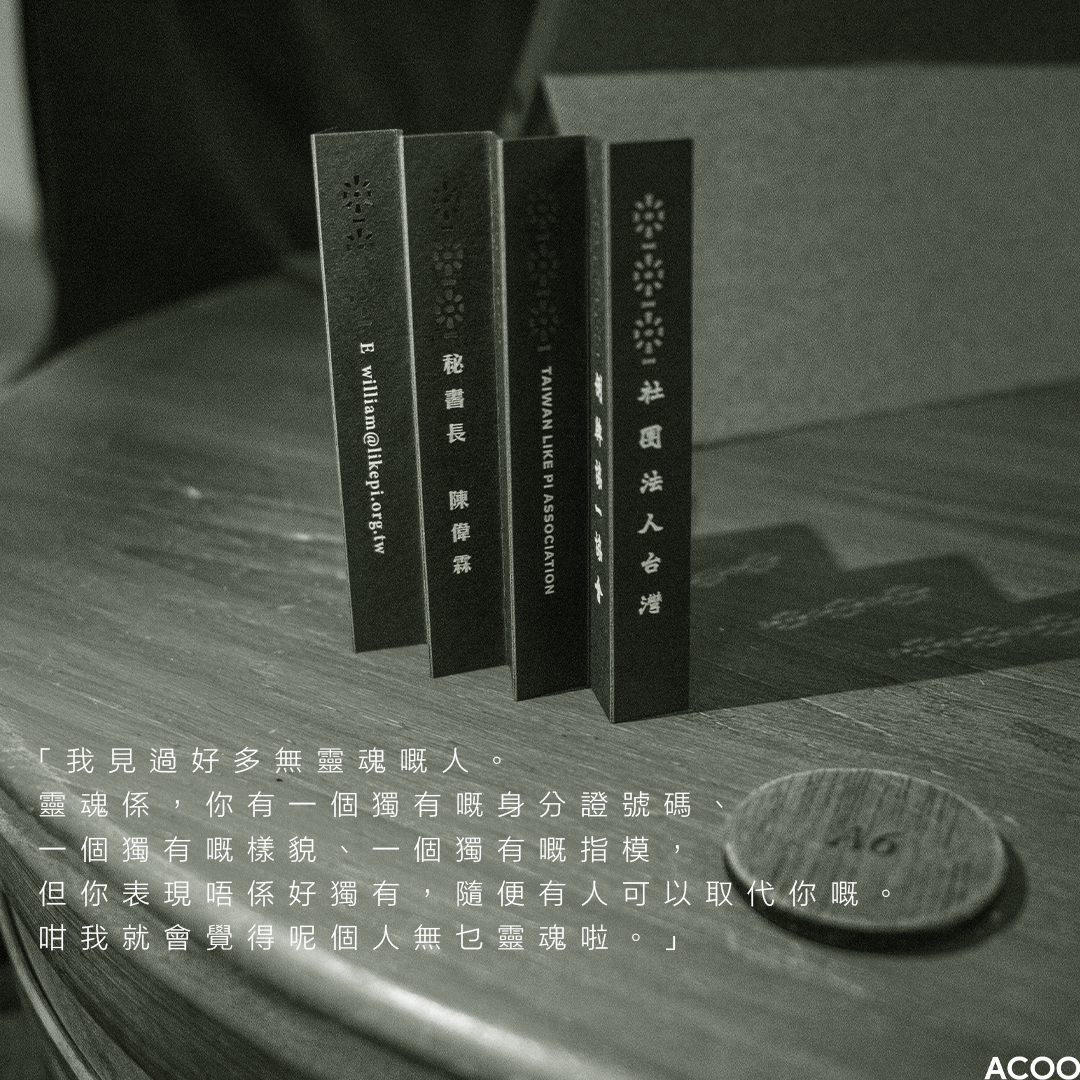陳偉霖見過很多「沒有靈魂」的人,「靈魂係,你有一個獨有嘅身分證號碼、一個獨有嘅樣貌、一個獨有嘅指模,但你表現唔係好獨有,隨便有人可以取代你嘅。咁我就會覺得呢個人無乜啦靈魂啦。」所以他又創立「台灣例牌協一協會」,宗旨是「有事開口,例牌幫手」,希望陪伴年輕人尋找他們的「靈魂」,找到他們的「例牌」。除了持續開解有死念的網友,他又用自身作教材。他曾在社交平台說,自己去學校分享時候,小學生常常要求摸摸他的點點,「痛嗎?」學生們問,「痛呀」。他形容:「別人用什麼方式教生命教育課我不知道,我只知道,每次我都在用生命去教的。」