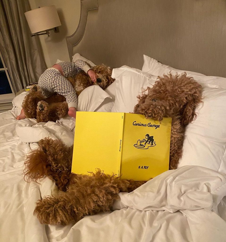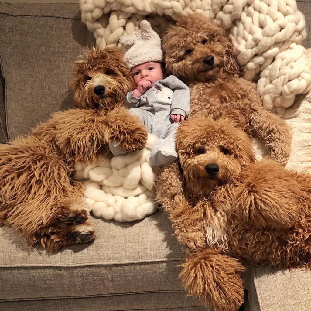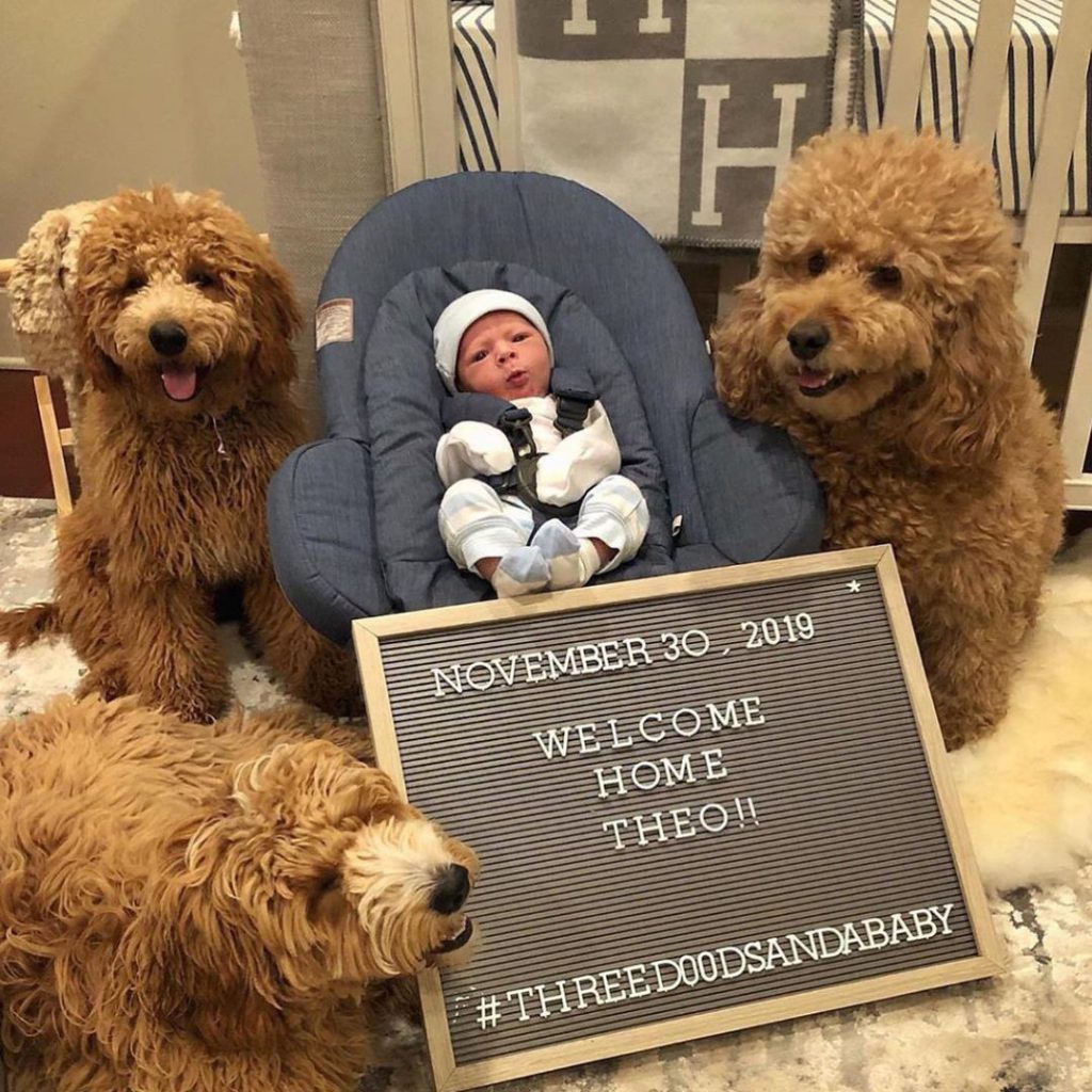 三隻狗狗Samson, Charley及Shea 每天都會倚著Theo睡覺,毛茸茸的手放在他的背上顯得格外窩心。牠們不只善於哄寶寶入睡,更加是一流的「保姆」。每當小孩哭鬧時,狗狗就會跑去抱著弟弟,令他的情緒回復平靜。狗狗與小朋友的感情十分要好,他們不止會一起睡午覺,還一起讀書、散步、看海、進食……