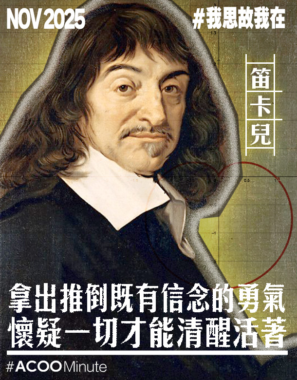 笛卡兒的名言「我思故我在」你一定聽過,他被稱為現代哲學之父,開創了歐陸理性主義的思潮。除了是哲學家,他還是一名數學家和科學家,例如發明了數學的XY軸座標,創立了解析幾何,為後來的微積分奠定基礎;在科學上,他提出了機械論自然觀,並對光學及物理學等產生深遠影響。但他最為重要的貢獻,其實是他對追尋真理的精神,激發了後來無數哲學家、數學家、科學家對求真的追求。 還記得中學數學的證明題,要應用各種公式和定理,一步步證明結論是否成立。笛卡兒自小對數學著迷,但同時認為所有學問的基礎都是哲學,所以他提倡以數學的方法進行哲學思考,像證明題一樣,以理性和邏輯達到真理。他認為應先建立一個絕對確定的基礎,才能從這個真理之上發展其他知識,重建人類的知識體系。 要找到這個絕對確定的基礎,笛卡兒採用了非常嚴謹的方式:懷疑一切。他認為感官經驗信不過,眼見未為真,譬如光的折射有時會形成錯覺;我們的知覺來自夢還是現實,也很難區分;甚至連1+1=2 他也認為需要懷疑,因為他假設有一個全能的惡魔蒙騙我們,使得數學定理也是錯的。如此滴水不漏的將所有事都徹底懷疑過後,還有甚麼是無可置疑的真理呢?於是笛卡兒提出「我思故我在」,意思是,唯一能確定的,是那個正在懷疑的自己的存在。我們無法懷疑正在「懷疑」的自己,所以只要你在思考,那就證明了你必然存在。 笛卡兒17世紀在法國出生,後來移居到言論相對自由的荷蘭,出版了《沉思錄》、《方法論》等重要著作。當時笛卡兒身處的歐洲,宗教影響力極大,教會就是知識的權威。笛卡兒提出「普遍懷疑」的主張,運用理性來追尋真理,某程度上挑戰著傳統的觀念。因此在笛卡兒死後,他的著作一度被法國政府列為禁書。笛卡兒的墓誌銘是這樣寫的:「笛卡兒,歐洲文藝復興以來,第一個為人類爭取並保證理性權利的人。」後來歐洲啟蒙時期的思想家,不少都受到笛卡兒推崇理性、質疑權威的思維影響。 「若你要成為追尋真理的人,就必須在一生中至少有一次,盡可能地懷疑一切。」甚麼都懷疑一番,並不是否定一切,而是以此為方法去探索真理。很多我們習以為常的東西,未必就是真理;若沒有懷疑一切的心態,可能就會盲目地服從了不合理的規則,相信了不正確的事。抱持打爛沙盤問到篤的懷疑,有著將一切既有信念推倒重建的勇氣,保持思考,親自找到說服得到自己的真理,才能清醒地活著。 文字:林三 @lam.three 設計:Po @p12_o28 ——————— In ACOO, you can get refreshed in #ACOOMinute. #笛卡兒 #沉思錄 #方法論 #我思故我在 #哲學