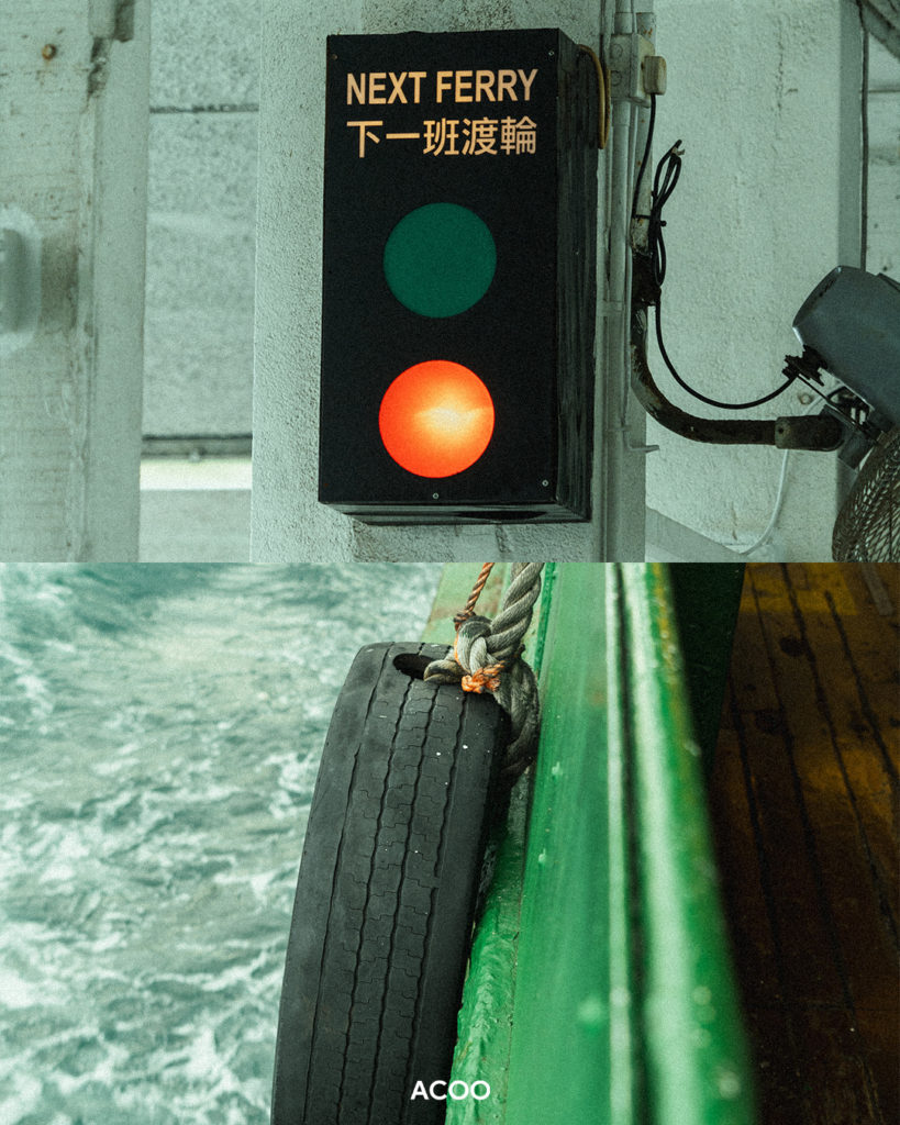 漆上了小輪標誌綠的尖沙咀碼頭,左邊去灣仔,右邊往中環。踏上樓梯,有點類近舊式唐樓設計的窗花,在候船間,嗅着海風鹹鹹的味道,聽着海浪拍打着岸邊的聲音,腦袋放空,不久船就到了。