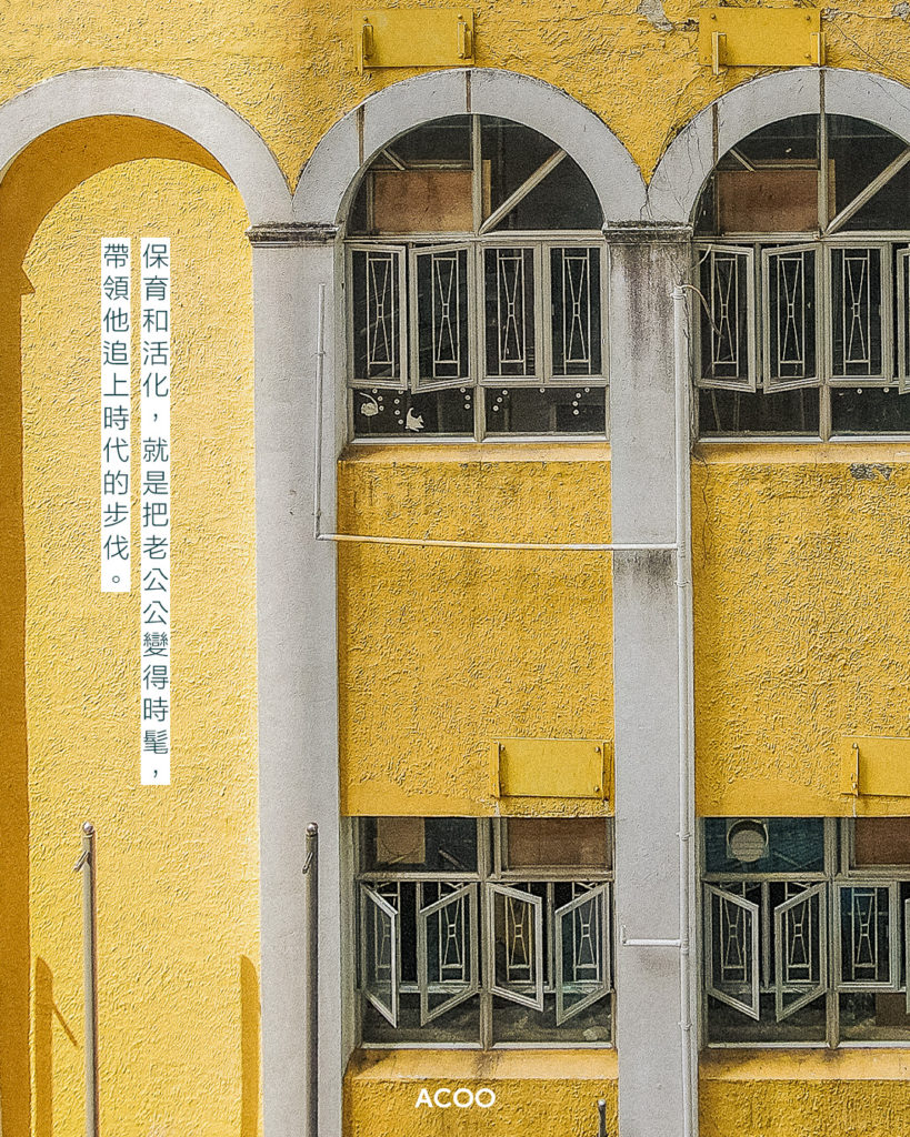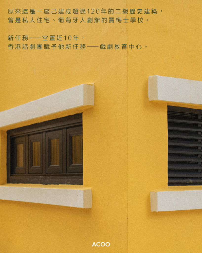 現在,香港話劇團入主,建築師讓這座空置了12年的老建築,重新塗上葡萄牙黃,正式啟用後,加上戲劇師生對舞台的熱情,充滿了久違的活力。
