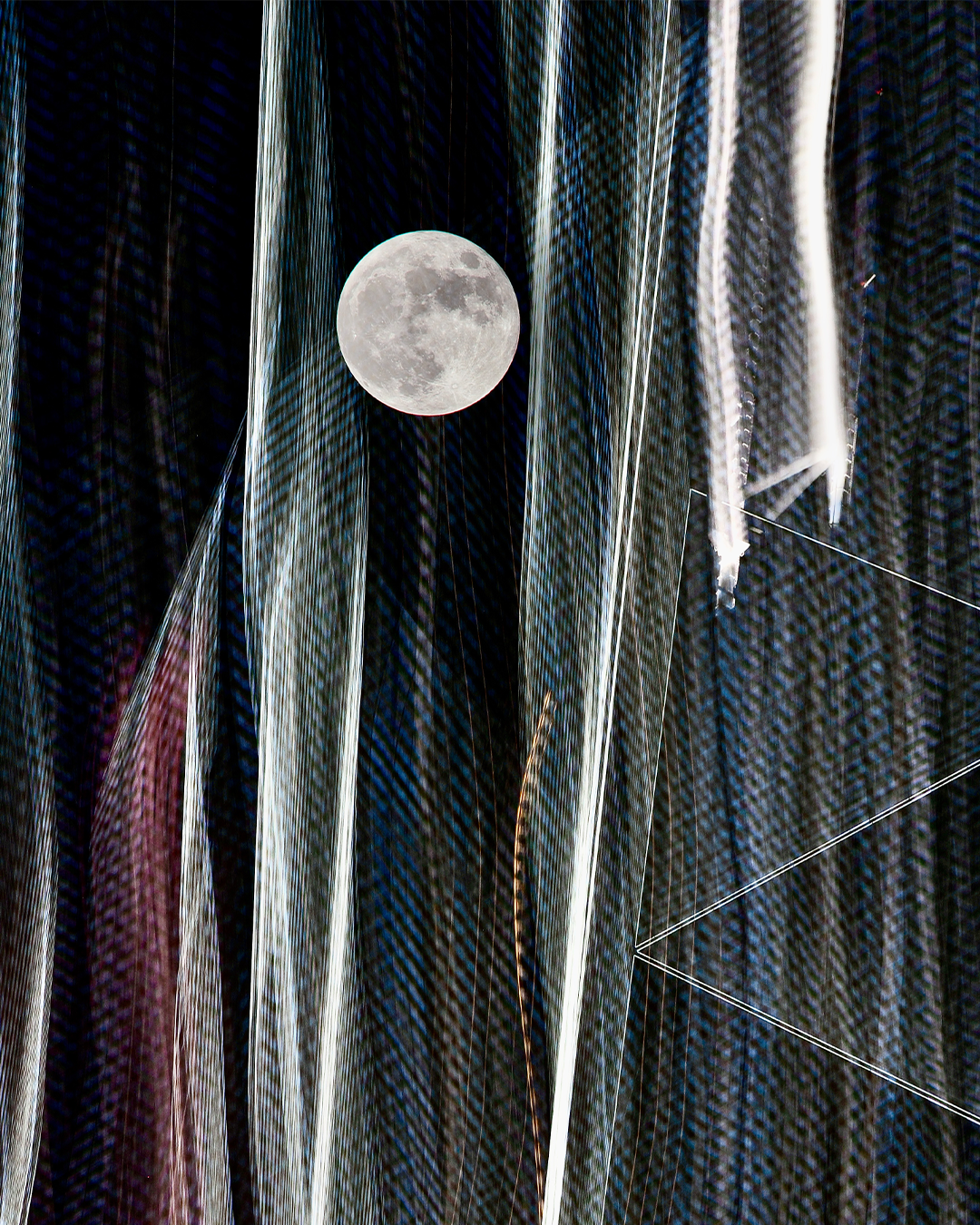這次Jeff在中環NUOVO舉辦攝影展,作品透過探索多種雙重曝光技術、「故意模糊」和「刻意移動相機」,捕捉圓月及香港的不同光線。他作品呈現不同的建築物在空間裏互動的張力;而交叉相疊的建築物,構成一幅又一幅的剪影或幾何拼貼圖,將月亮與城市景觀和建築形態微妙結合,構成一幀幀美術攝影。