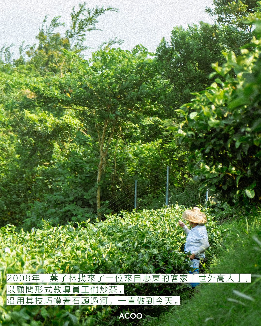 再生農業部經理葉子林憶述,2004年開始,農場希望復育茶園,卻沒有炒茶的技術,「我哋啲女工伙記,可能後生嘅時候炒過,叫佢自己試吓。炒完之後發覺真係好難飲。嗰段時間,我都唔敢同人講我哋有個茶園。我發現咁樣亂嚟都唔係辦法。」2008年,葉子林找來了一位來自惠東的客家「世外高人」,以顧問形式教導員工們炒茶,沿用其技巧摸著石頭過河,一直做到今天。
