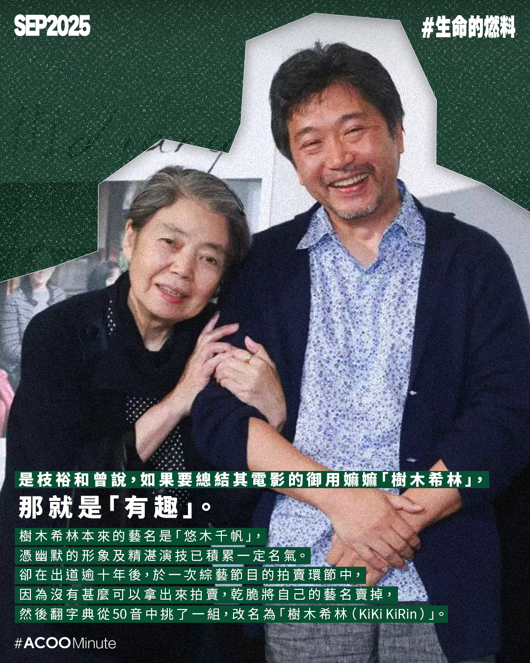 如果有看過是枝裕和的電影,必然會記得他的御用嫲嫲樹木希林。戲中她以慈愛但有點毒舌的形象,將嫲嫲和母親的角色演得維肖維妙。是枝裕和曾說,如果要總結樹木希林的魅力,那就是「有趣」。有點叛逆的她,個性瀟灑豁達,一生只追求過得有趣,「我想要的不是快樂,而是覺得有趣。人生在世,若不覺得有趣,就很難走下去。」