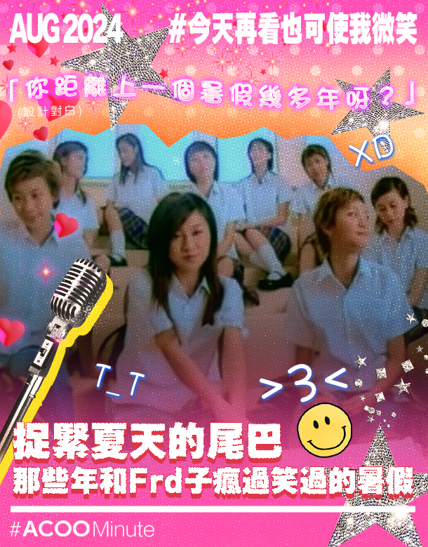 人大了,有時很想時光倒流,做回學生哥,其中一樣最正的是有得放暑假。不用每天上堂、做功課溫書,無憂無慮的享受夏日,即使不去旅行也大把娛樂,是一去不返的快樂時光。暑假對你來說,又有甚麼特別的回憶? |盡情玩 難得放長假,當然要盡情去玩。小時候通常會去公園玩,玩完去M記食薯條新地筒,一邊食一邊討論前一晚的電視劇劇情,回家前再到便利店食孖條飲思樂冰。中學時期就成班同學去Neway、RED MR唱K lunch,還有現已成為歷史的Green Box,臨夠鐘就必定要點《勁歌金曲》或《情歌王》,用小聰明偷雞回來的數分鐘,已足夠讓大家開心一整天。唱完直落影貼紙相,那時候還不流行簡單的韓式「人生四格」,而是色彩繽紛加上Kawaii十足的貼圖的日系貼紙相,限時內在小小的鏡頭框內擺不同甫士,之後再以考公開試的手速瘋狂用畫筆點上特效圖案和文字,再將那些每個人眼睛都大到變形的貼紙相剪貼過膠,是當時的友情見證。 |長洲渡假屋過夜 長洲渡假屋過夜,可能是不少人中學的青春回憶。白天在沙灘游水、玩沙灘排球、汗滴汗在烈日下BBQ、掃街食大魚蛋。晚上回到渡假屋,就圍在一起,一路驚一路講鬼故,或者通宵打牌、傾心事、玩Truth or Dare(是八卦別人感情狀況或幫朋友助攻的好時機!)。往後即使也會跟朋友去旅行玩幾晚,但中學時期那種首次跟朋友過夜的自由體驗,是無可取替的。 |Deadline Fighter初階型態 暑期作業還是逃不掉的。假期剛開始時,總是雄心壯志想快快手做完,但家中實在太多誘惑,結果每天都睡到中午,然後瘋狂打機煲劇,還是把功課拖到了最後幾天,成為初階型態的Deadline Fighter。望著一堆功課,開始著急,唯有臨急抱佛腳,與同學互相「抄考」。專業的我們,當然記得要有幾道答案「技術性出錯」,避免被發現。 那些自由自在的暑假很美好,但每每回想起美好的事物,總帶點悲傷,因為已經無法重來。人一生能經歷的暑假次數有限,而且是期間限定,只屬於學生時期的自己。其實世間很多事都是美好而短暫,可一不可再,我們能做的就是將快樂記憶珍藏起來,沿途繼續收集當下的美好,享受每一刻。 -------------------- In ACOO, you can get refreshed in #ACOOMinute. 文字:林三 @lam.three 設計:Kayan @yipyn