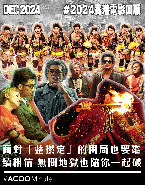 2024是港產片精彩的一年,好幾套電影上映時均成為全城熱話,甚至打破票房紀錄。在這些電影中,你又得到過甚麼力量? |九龍城寨之圍城:整撚定㗎,留住自己條命,走出去 電影由漫畫改編,以80年代的九龍城寨為背景,講述一群在城寨內「離不開,留不低」的人,拼命保護城寨的熱血故事。電影上映後掀起城寨熱潮,有份主演的「城寨四少」林峯、劉俊謙等人爆紅,機場大堂早前亦特設城寨電影場景展覽。髒亂無序的圍城是個獨特的地方,大家迫不得已留在這裡,等待離開;卻因為城寨的人,而不惜捨棄性命,也要保護這個地方。即使很多事都是「整撚定」,也要盡人事,留住自己條命,想辨法走下去。 |破.地獄:生人也需要破地獄,生人都有好多地獄 由兩大笑匠許冠文及黃子華出演,題材卻極為沉重,借道教儀式破地獄探討生死。電影破地獄之餘亦破了紀錄,上映不到一個月票房已破億,打破香港華語電影最高票房紀錄。破地獄儀式是超度先人,但電影的主題在於如何超度生人。生人都有好多地獄,愛別離、求不得、放不下,受困的人何嘗不是在痛苦之中輪迴?電影寄語大家,要打破苦的輪迴,可以學習用另一種眼光看世界:有機會來到這個世界已經賺了,不如好好欣賞沿途的風景。 |焚城:只要還有希望,我去 焚城是首部以輻射災難為題材的港產片,由劉德華、白宇、莫文蔚領銜主演,不少新世代演員亦有參與演出。電影講述當香港面臨輻射危機時,前線消防的奮戰與犧牲,以及政府內部的角力。當面對難以控制的災難,人顯得渺小無力。要成功,有時只靠努力也不夠,也需要運氣搏一搏。但只要還有一絲希望,也要繼續試,說不定仍有轉機。 |我談的那場戀愛:愛情,只要你相信,就是真的 電影寫了一場網上情緣騙局,由吳君如飾演的喪偶寂寞中女,遇上由MC張天賦飾演、剛加入詐騙集團的少年。這段網上情緣,外人看來就是一場騙局,但被騙的那個卻說自己「只是談了一場戀愛」。兩人在這段虛假情緣中各自釋懷,有人揮別傷痛,有人走出迷惘。過程中獲得的快樂和救贖,誰又說不是真的?真真假假,往往難以分辨。其實不只愛情,很多事情,只要你相信,就是真的。 |臨時劫案:講多謝! 這是今年的賀歲片,雖討論度不高,但被網民評為被低估之作。電影由郭富城、林家棟及任賢齊主演,講述兩個頹廢中年計劃搶劫,卻意外遇上真正悍匪,誤打誤撞地臨時組隊打劫。電影笑中有淚,片中郭富城飾演的悍匪以哨牙扮醜示人,加上獨特的口頭禪,令人眼前一亮,相當有喜感。郭富城的角色雖是悍匪,卻有自己的堅持,如要有禮貌,要「講多謝」,亦堅持「我哋係悍匪,唔係殺手」,不濫殺無辜。即使被迫行了某些路,但自己信守的價值,還是要堅持。 回顧2024,可能有得意,有失落。在電影裡,我們可以喘口氣,帶著從中感受到的力量,繼續相信,繼續希望,繼續堅持。搵啱路,再繼續走;無間地獄,也陪你一起破。 文字:林三 @lam.three 設計:PO @p12_o28 -------------------- In ACOO, you can get refreshed in #ACOOMinute.
