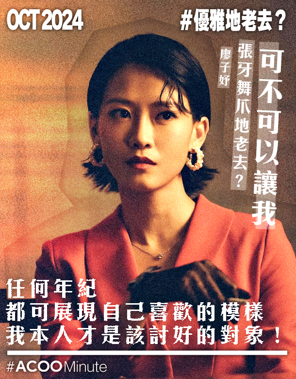演員廖子妤早前在threads上發文,指有些上了年紀但仍作花俏打扮的女星,常常會被勸喻應「優雅地老去」,她對此感到疑惑,指自己本就不是優雅的人,「可不可以讓我張牙舞爪地老去?」串文引發網民熱烈討論。如何面對老去這回事,其實也是每個人必然面對的課題。 日本作家渡邊淳一有本書叫《優雅地老去》,主張老人不必每天躲在家中,可以積極接受新挑戰,打破「人生只能如此」的想法。但傳媒所用的「優雅地老去」,卻很多時是用來形容上了年紀且保養得宜的藝人。 當有些明星到了某些年紀,仍化濃妝、做醫美或著短裙,就會被嘲諷是扮年輕,勸他們不如優雅地老去。這聽來是呼籲大家要接受自己老去的事實,但有時也可能隱含了一種教條:你老了,要做屬於那個年紀應做的事,穿那個年紀該穿的衣服,展現出那個年紀該有的樣子。 於是,「優雅地老去」變相成了另一種束縛。其實誰又可以介定甚麼才是一個年紀該有的樣子?如果我就是不喜歡皺紋與白髮,那打扮成自己理想中的模樣,那又有何不可?任何年紀,都應該可以展現自己喜歡的模樣,因為自己才是最應該討好的對象。是否優雅,是別人的評價;對自己而言,只要覺得自在舒服就好了。 所謂優雅地老去,也許重點在於以從容的姿態迎接變老這回事。能輕鬆面對固然是好事,但接受變老並不容易,無論甚麼年紀,都會對衰老感到恐懼和焦慮。只要相信年紀不會影響你的價值,你仍然有力量去控制自己人生,未來仍存有無限可能,不必自我規限,也許能幫助減輕焦慮。即使未ready變老,那就接受自己未ready吧,一切也是過程。 文字:林三 @lam.three 設計:Owen @wai.ho.98 -------------------- In ACOO, you can get refreshed in #ACOOMinute.