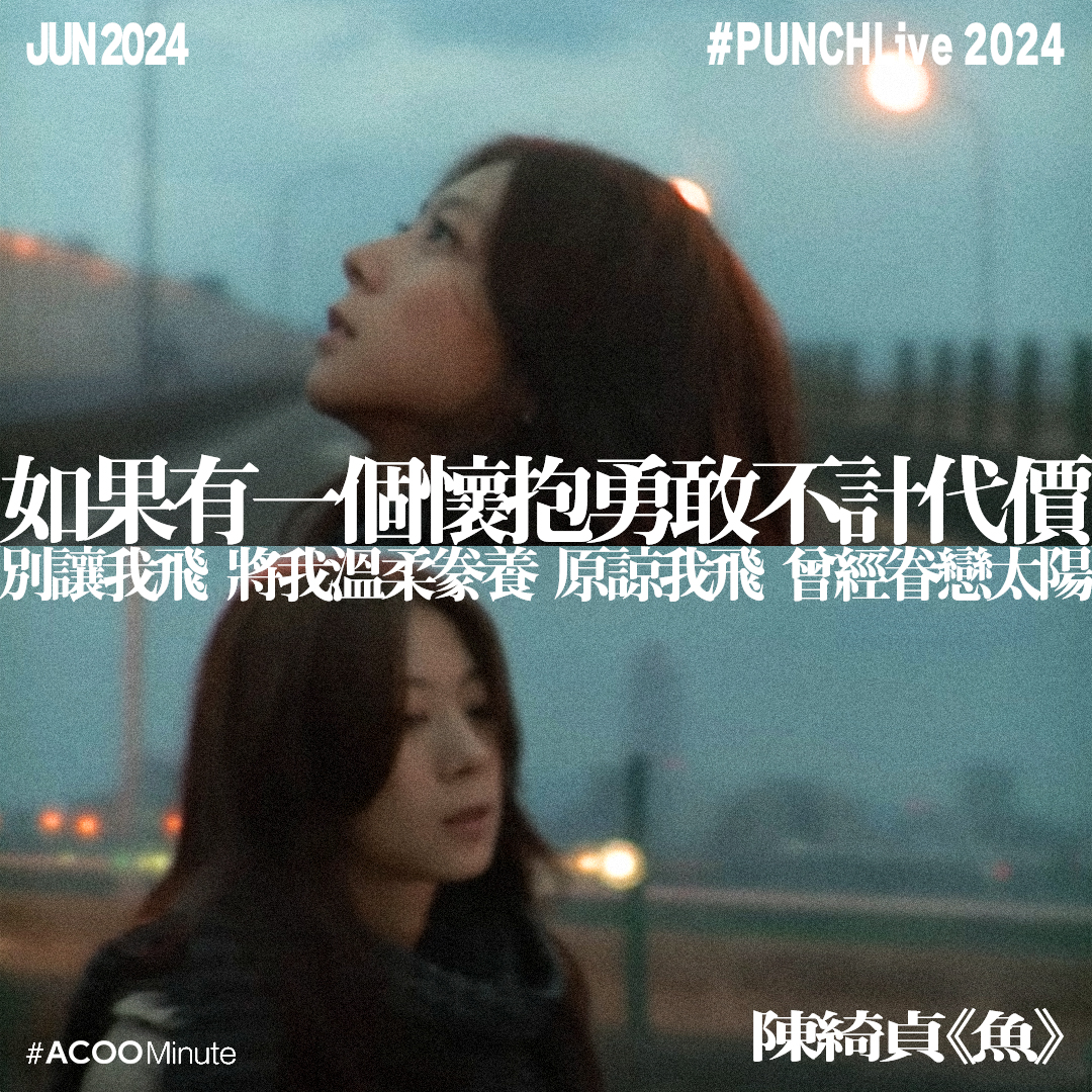 去年是4個「壞男孩」,PUNCHLive今年來個360度大轉變,以「文青女神」,台灣的陳綺貞領銜,以清新和療癒的音樂風格為焦點。香港代表,就有大家非常熟悉的岑寧兒和Serrini。另一個表演單位《Japanese Breakfast》,對香港樂迷來說或許較陌生,但這個來自美國(是,美國,與日本毫無關係!)的獨立樂團主音,韓美混血兒Michelle Zauner,2016年以《Japanese Breakfast》為名錄製首張專輯,夢幻電子曲風頗受好評,使她逐漸走紅。2021年,第三張專輯《Jubliee》更入圍格林美最佳另類專輯獎。2022年,《時代》雜誌將她列為年度百大最具影響力的人物之一,來頭不小。 在旋律裏,隔絕一切紛紛擾擾,築起屬於我們的自由世界。如果你正迷失,正需要被溫柔鼓勵和爽朗的鞭策,6月29日邀請大家參與「PUNCHLive 2024」,感受一場由女性主導、展現現代女生力量和才華的音樂盛會。 如果你也想被治癒,密切留意ACOO,驚喜將不定時從天而降! 「PUNCHLive 2024」 日期: 6月29日(星期六) 地點:亞洲國際博覽館ARENA 時間:晚上7時半
