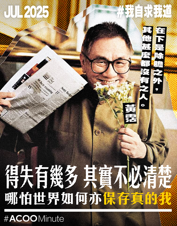 被譽為一代鬼才的黃霑,填過《滄海一聲笑》、《獅子山下》、《上海灘》等名曲,詞風瀟灑豪邁,氣勢磅礡。在黃霑離世廿多年後,我們也在歲月中成長,如今再細味他的歌詞,才讀懂他那份豁達灑脫,懂得欣賞他那「我自求我道」的人生態度。 黃霑是香港流行文化重要代表人物之一,與金庸、倪匡、蔡瀾並列為香港四大才子,是作曲家、填詞人、廣告人、作家、主持人、演員,影響力橫跨多個領域。他出生於廣州,8歲時隨家人逃難來港,自小喜愛文學與音樂。港大中文系畢業後,他曾短暫做教師,後來轉投廣告界,創作過不少耳熟能詳的廣告詞,如家計會的「兩個就夠晒數」等。他涉足詞壇之時,香港樂壇仍以國語及英文歌為主流。他突破傳統,以粵語創作具現代感的廣東歌,歌詞既貼近日常,又富詩意,推動粵語歌走向主流。他的創作能雅能俗,既能寫出豪氣的「滄海一聲笑,滔滔兩岸潮」;也能創作出被周星馳借用的啜核對聯「冚家剷泥齊種樹,汝家池塘多膠魚」,反映其深厚文字功力。 黃霑性格豪爽直接,大情大性。在節目《今夜不設防》中,他與好友食煙飲酒講粗口,暢談風花雪月與人生,尺度開放;亦曾出版《不文集》寫色情笑話,挑戰當時保守社會的禁忌,引起頗大爭議,但他卻說其文集是「為真小人爭取社會地位,不肯讓偽君子們霸佔了整個世界」,毫無文人包袱,坦坦蕩蕩。他曾說,創作只需有赤子之心,把心中的真實感受傾瀉出來,那作品就一定會好。崇尚自由,不虛偽造作,這樣的性情,令他的歌詞自帶一種江湖俠氣的氣韻。 這樣一個豪邁不羈的人,也有過低谷時候。他試過生意失敗,欠下千萬巨債,加上感情失意,一度萌生輕生念頭,幸而最後想通,拼命工作還債翻身。他的女兒黃宇詩曾分享父親的人生哲學:「盡做,但放開。」盡力而為,但不必執著於最終的成敗得失。就如面對生死,他也看得淡然。他晚年患癌,積極治療的同時,也接受生死有命,活著就感恩,繼續他的追求。在患癌幾年間,他堅持完成博士論文,臨終前數個月亦替張敬軒填最後一首詞,享受他所熱愛的事,直至最後一刻。 人生匆匆數十載,得失有幾多不必清楚,只願一生去到終結,無論歷盡幾許風波,仍然能夠講一聲,我係我。黃霑始終灑脫,笑看風雲:「人生事,能一笑置之,最好。但笑不出,怎麼辦?秘訣是:笑不出也笑!漸漸,笑就會變成習慣了。」 文字:林三 @lam.three 設計:Owen @wai.ho.98 -------------------- In ACOO, you can get refreshed in #ACOOMinute.