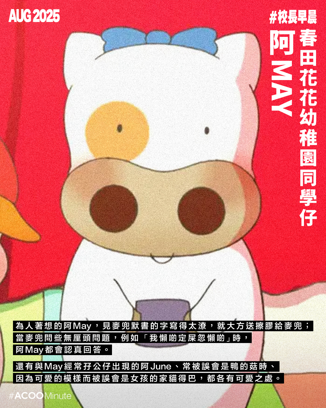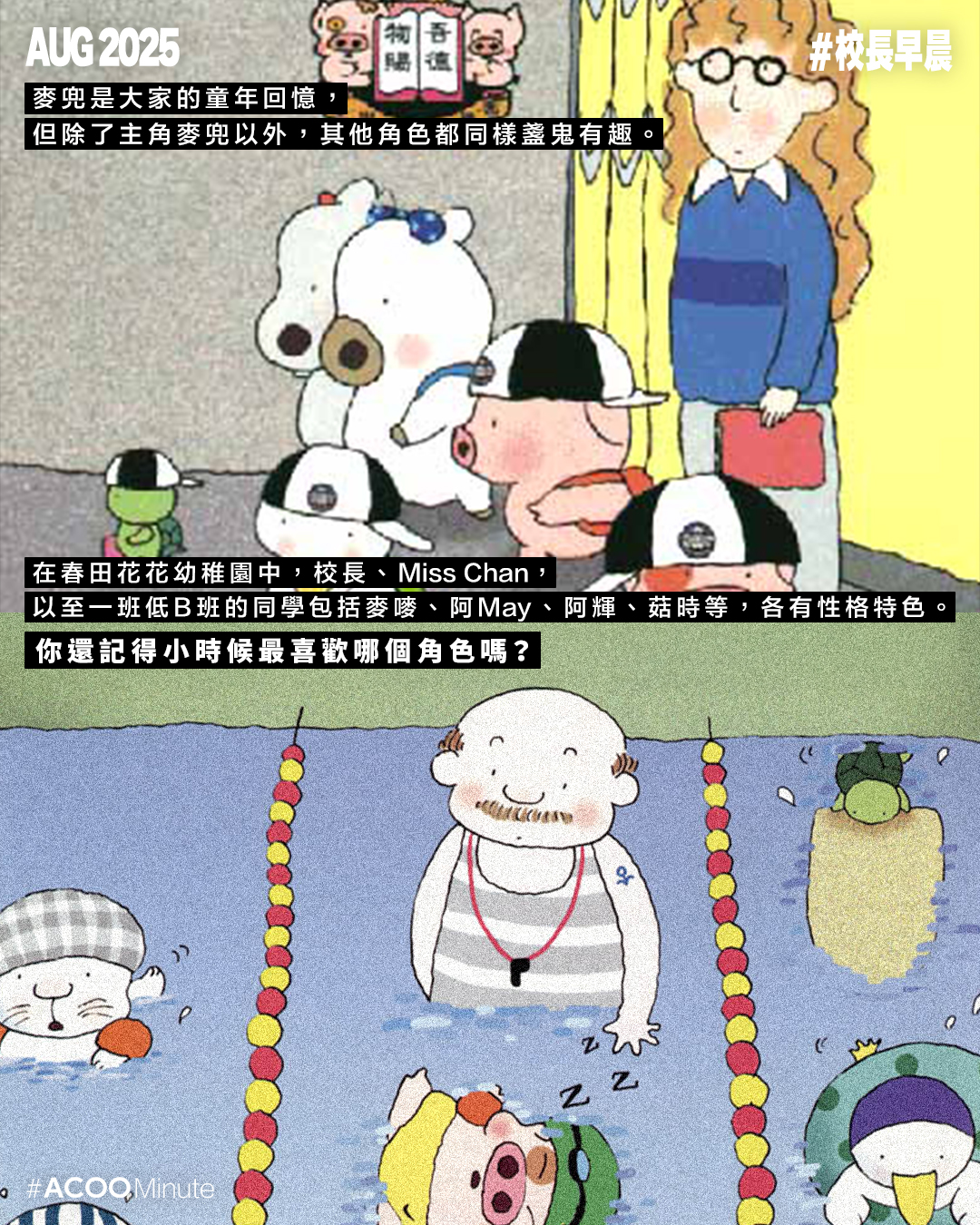 麥兜是大家的童年回憶,但除了主角麥兜以外,其他角色都同樣盞鬼有趣。在春田花花幼稚園中,校長、Miss Chan,以至一班低B班的同學包括麥嘜、阿May、阿輝、菇時等,各有性格特色。你還記得小時候最喜歡哪個角色嗎?