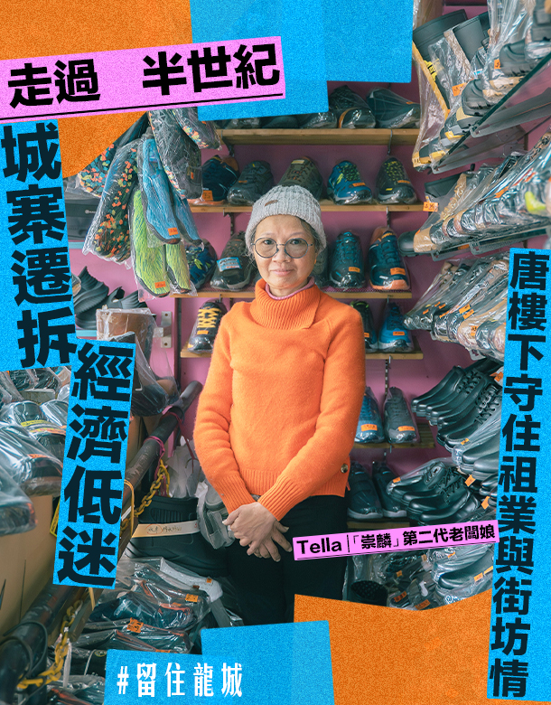 「唔該我想搵Tella姐!」 「好!請等等。」 半個身影從鞋店的閣樓探出,隨之,她從貨梯上矯捷爬下,雙眼帶笑,聽起了客人的來意。開業近六十年,這幕在崇麟上演過無數遍——走過半百,九龍城的一切或聲張、或悄然地變着;但在衙前塱道的這間小鞋店,一切又彷彿始終如一,好比眼前始終笑容可掬、用心對待每位來客的她。她,就是崇麟鞋業的老闆Tella姐。 文字:Yanto @yanto_924 攝影:Hiuyan @hyphotgrap 設計:Owen @wai.ho.98 |寫了大半輩子的地址:衙前塱道82-84號 這間位於九龍寨城公園正對面、一幢外牆已落漆的唐樓之下的鞋舖「崇麟」,於1967年開業,由Tella父親所開——那甚至是城寨還未被拆遷的年代,當時的Tella只有3歲,「仲係小朋友嘅時候,就住喺呢度樓上,呢個地址我都寫咗60年喇。」她一頓,解釋由於父親從中國偷渡來港,所以無法回去:「我負責寫信去問候媽媽。」當年因為要應街坊所需,崇麟還會售賣各種雜貨家品,所以稱之為「崇麟百貨」。後來,隨着城寨的遷拆、社區的發展,崇麟慢慢轉為只賣鞋履,從小小街檔擴張,租下了隔壁唐樓的地舖位,作為店鋪延伸。 後來,Tella一家曾搬走。或許是緣分的驅使,兜兜轉轉後,他們最後又回到這座唐樓之下。「咁啱呢棟樓之前唔知有啲咩結構性問題,拆咗之後就變成可以喺度租舖做生意。」自此,他們便正式落地生根,直到現在。Tella回想起這些年的潮起潮落,有感而發地說:「我個業主真係好好,好照顧我哋呢啲小商戶。」三十幾年間,崇麟經歷市道高低跌宕,自然也有過低谷,「喺經濟唔好嘅時候,我都好忐忑,因為自己都有三個小朋友。如果過唔到(呢關),最後嘅打算就係破產,承擔責任。」就在店舖九死一生時,Tella為了拼出一個機會,便硬着頭皮寫信給業主,說明情況。誰料到,業主真的答允減租,與他們共度時艱。「(業主)唔可以只係用『良心』兩個字去界定,而係真係有修養。」 雖然只是社區一隅不起眼的小鞋舖,卻在它近一甲子的生命中,承載了那些年經濟起飛港人的拼搏精神,又有着過去一城人共同走過的低潮。 |做一間街坊舖 走在今年的九龍城街頭,可以看到滿街老舖,連被老舖顧大的孩子也開始兩鬢斑白。時代的巨輪不斷向前滾動,也為崇麟帶來不少艱巨的挑戰,Tella直言一是網購,二是連鎖店:「新嘅家庭、後生仔,或者係新手父母,佢哋幫小朋友買返學鞋,好多時候都會習慣去某啲牌子,因為嗰啲牌子已經係深入佢哋嘅生活裏面。」的確,童年記憶中街市或商場擺放着人字拖、膠拖鞋的舊鞋店,都在不經意間逐一消失,換來各間一式一樣的連鎖店。 幸好,崇麟還有一眾老朋友的支持,不少街坊即使搬離社區,仍然會專程回來幫襯,只因為崇麟獨有的人情味 —— 在崇麟的另一號人物是阿晴,她從16歲便在這裏打工,直至現在已成家。說起阿晴,Tella有讚無彈,直言她做得捱得又有心:「你真係可以用無微不至去形容佢嘅上心,啲鞋係需要點着、可以點着,對學生鞋上次着咩碼,今次幫佢攞大多一、兩個碼。」舖頭內的鞋全都擺放得整齊有序,從嬰兒鞋、返學鞋、到護士鞋、拖鞋,甚至繡花鞋都有,就如同她們一樣,陪伴街坊走過人生的每段路。 這份用心是有回饋的,兩年前舖貓花花得了腎病,醫藥費要價不斐。更嚴峻的是,那時鞋舖生意低迷,讓Tella感到蠟燭兩頭燒,壓力快把她壓垮。這時候,一位街坊竟亦義無反顧,扛起了照顧花花的重任。Tella解釋,街坊是一位貓義工,和花花關係一直都很好:「聽到姐姐把聲,佢會即刻由入面走出嚟,然後撲上姐姐度騎膊馬。」不忍看花花受病痛折磨,那位街坊包辦了花花的醫藥費用,帶牠看新醫生、試新藥。雖然花花最終還是不敵病魔,但在生命的最後,牠有了多一位深愛牠的人陪伴,亦加深了Tella與這裏人和事的牽絆:「真係令我覺得有人好重視你、重視你啲貓。」 |再見龍城 經營至今,對Tella來說崇麟早已不只是一個檔口、一門生意,更是待人接物的精神,「雖然係唔起眼嘅嘢,但可以由你去畀價值佢。」一直以來的用心,凝聚成了鄰里間的信任和關係。不少街坊經過,無論是不是來買鞋,都總愛進來逗逗貓,與Tella、阿晴聊聊天。可惜,九龍城區重建工程將至,屆時衙前圍道及賈炳達道一帶的居民、商戶都要遷出,「估計在2025的年中至年尾,我們應該就要搬走。」 不過,即使在市道低迷等種種不利因素之下,Tella仍無意讓崇麟就此結業,「可能係對九龍城熟咗,我啲熟客由出面返嚟,都係習慣返嚟九龍城搵我哋。就算未有呢個重建項目嘅時候,我自己都諗過會做到退休。」若租金、地理位置許可的話,她還是希望在區內重新找一個舖位,繼續服務街坊。 傳統習俗說不能送鞋給喜歡的人,原因是象徵送走他;不過崇麟那麼多雙好走的鞋,已伴眾人走過了半世紀歲月,相信即使走再遠的路,也定必能把Tella帶回來九龍城。她說:「只要你肯做、你想做,你就去做,自然會有下一步跟住你。」 -------------------- In ACOO, you can see #ACOOPerson.