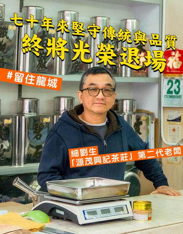 從傳統酒樓的一盅兩件,到結婚過大禮向家長敬茶,在香港文化中,茶一直佔一重要席位。在九龍城南角道一間小茶莊「源茂興記」,茶也同樣在兩位老闆劉氏兄弟的生命裏留下深刻印記。「精選各種名茶」、「唯一馳名觀音」,茶莊門口兩側威風凜凜寫着,而頂上則是從右到左六個大字:「源茂興記茶莊」。從1954年開業至今,這裏始終如一,茶葉的穩定品質,一直讓細劉生引以為傲:「七十年前係咁樣包(茶葉),七十年後都係咁樣包——只不過多咗個膠袋。」 只是如今面臨九龍城區重建,茶莊也終將迎來光榮下場的結局。「初頭就諗住搬遷嘅,但而家就諗住唔做,因為我哥打算退休喇,變咗得我一個人,做唔掂囉。」老闆之一「細劉生」解釋道。這個陪伴他們逾六十載的小天地,終將不復存在。 文字:Yanto @yanto_924 攝影:Hiuyan @hyphotgrap 設計:Kayan @yipyn |在茶莊的那些年 「我哋都喺九龍城長大、喺度出世㗎。一直以嚟,由返學放學直到結婚,都係喺九龍城生活, 其實九龍城就係我嘅故鄉。」從細劉生出生以來,他們一家七口便住在九龍城南角道,舊居與現舖只有一條馬路之隔。「因為我哋以前係前舖後居,直接住喺裏面。」1200呎的空間,由爸媽、五兄弟姐妹、店面、存貨攤分,每人分到的空間其實並不多。到晚上要睡覺時,「攞兩個茶葉箱,然後行一塊板,嗰塊板係兩呎左右,瞓一陣半夜會變咗喺地下,哈哈。」 不光是生活空間,茶莊的工作也佔據了細劉生童年一大部分。「放學之後,係做完舖頭嘅工作先做功課㗎。」那時生意興旺,五兄弟姐妹自然逃不過要幫忙分擔店內工作。他們每天一同圍着桌子包茶葉,動輒用上個多兩個小時。茶莊晚上九點關門,「你唔幫忙?咪無得收工囉。」姑勿論關店後,他們還要完成學校功課。 如斯日復一日,這群孩子也長大成人,正式步入社會。不過,細劉生並非一開始便計劃接手茶莊。建築、速遞、膠袋製作