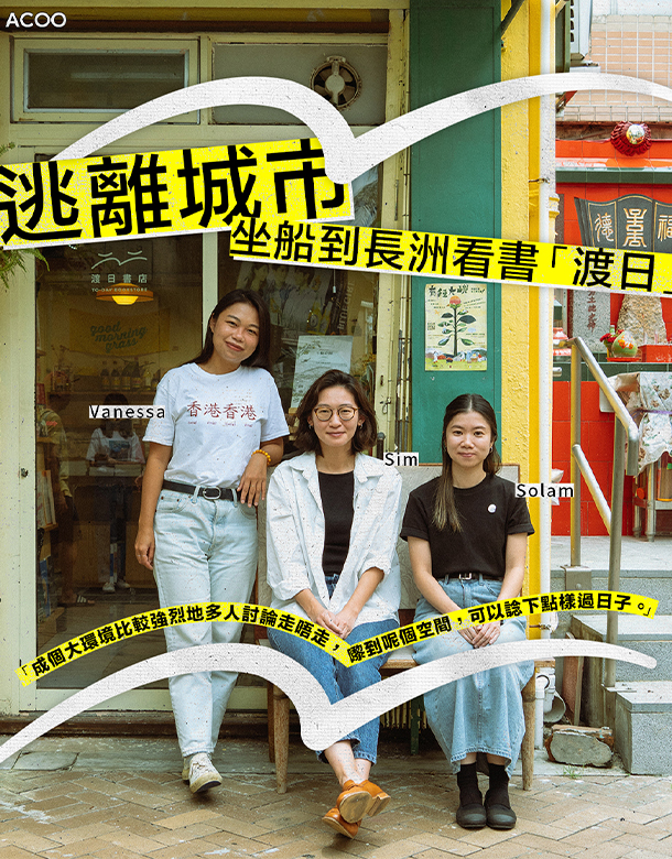 曾幾何時,三五知己總愛聚在一起拼湊將來,你一言我一語的說着不如開間書店、咖啡廳,可無數天馬行空的想法都遺落在過去。有7個因不同原因在不同時間搬入長洲的朋友,希望能在小島上擁有一個「竇」的想法一直縈繞,她們常常會聊說:「如果有個舖頭會做乜?」一天如常的在聚會裏天南地北的說,發現長洲原來沒有一間書店,各自又對藝文有興趣,碰巧那時島上還有一個適合的舖位,「不如開書店啦!」就這樣,長洲在21年9月便有了「渡日書店」。 「渡就係由一個點去一個點嘅意思,就好似啲人一定係搭船先會嚟到呢個地方。」接受訪問的其中一位店長Solam說:「而渡日就好似渡過一啲日子,(當時)成個大環境係有一種比較強烈地多人討論走唔走。」無論如何,希望人們來到這個空間能重新思考如何過日子。 來坐上這艘文字的小船, 聽聽三位店長 —— Solam(SL)、Sim(S)和Vanessa(V)與長洲這座小島的故事,或許就會想給自己一個小假期,從每天忙碌的工作中逃離,好好的過一天。 文字:Hoiyan @seamouse_hoiyan 攝影、設計:Owen @wai.ho.98 |她們和小島 為甚麼要從方便的鬧市,搬入看似與城市隔絕的島嶼?三人都笑言一切只是水到渠成,並沒有特別計劃,S是和男朋友一起搬到長洲,SL則因為長洲朋友家附近剛好招租,便很快下了決定入住,而V則是接租朋友單位,她說:「以前去過兩個唔同地方,一個係威尼斯,另一個就係瀨戶內海藝術祭,我都幾鍾意搭船。」 SL是獨立設計師,S初入島時也是自由工作者,後來轉職為營銷傳播職員,而V則是任職藝術行政的工作。後者二人在九龍工作,每天都需要長途跋涉的坐船又轉車,V本來就很會享受船上時光:「聽下歌睇下書,唔會覺得時間特別耐。」然而,S覺得距離雖遠,但上船時就像半隻腳已踏進家門,況且放假能留在島上真的很放鬆,「島仔細細,但同nature真係超接近,可能真係5分鐘路程就可以跳落水,想行個山都係講緊10幾20分鐘,超good!」一個長洲,就有不同場景,熱鬧、寧靜、山和海,閒時在島上漫無目的地探索,也是島民的一大樂趣。 |小島和書 探索這件事,有人喜歡以雙腳發現,也有人喜歡在書海中徜徉。與其他獨立書店不同,渡日沒有仔細定位,S說:「都算係雜崩冷啲,好因應我哋每個人嘅認識同興趣去建立呢間舖存在嘅嘢。」小說、散文等文學類作品就正是她所愛,而V就喜歡獨立出版物,所以也收集了不少Zine,也有SL喜愛的繪本,還有其他人喜歡的航海、歷史或童書,甚至是生活用品,處處都充滿不期而遇的驚喜。V補充:「唔係話啲書剩係呢度有得賣,而係我哋每次去旅行,覺得得意嘅都會攞返嚟賣,讀者發現原來有呢啲書,都係一個好嘅encounter。」 「有啲書係同島或者海有關,都唔係話好多,不過都會有。」SL拿出由邱世文爸爸邱東明著的《長洲生活記》、已絕版的《長洲手札》、關於漁民和漁歌的《岸上漁歌》,還有多年前由長洲街坊點點媽媽多年前一人製作的Zine《點兒》,「每一期都係一張紙,用返佢作為本地人的角度去講,譬如長洲太平清醮,又或者係行樓梯的經驗等等。」不說不知道,海傍街的建築若是建高數級,那幾乎可以肯定它是建於70年代或以前,因為那時尚未填海,舖外已是沙地和海,建高是為了防止潮漲或風暴時海水湧進屋內。還有更多有趣的島嶼小故事,躺在店內靜待大家發現,SL說:「有一份係講舖頭貓,好多都已經唔喺度㗎喇,島民睇返啲相就即刻好有回憶,我覺得係一啲出版或者書,最實在嘅意義同價值。」 |對的人和對的書 每一次有讀者來尋寶,看到店長的選書並帶走,剛好那本是V的書時,她帶着滿足的笑容說:「覺得『嗯!我啲taste都幾好!』,搵到一啲大家share嘅interest。」SL接言:「睇書呢啲嘢好個人,所以我諗點解我哋會莫名其妙興奮,就係覺得我鍾意嘅嘢都有人鍾意。」每件事一體兩面,在這些書遇到對的人之前,也偶爾是店長們甜蜜的掙扎。 「經常都會有呢啲考慮或者掙扎,就是大家會喜歡看啲咩書,或者我們店長自己有啲咩書想推介畀人。」有時可能店長覺得某本書很正,入書後賣出速度不及,最後成為囤貨,S分享經營信念:「我哋有一個『賣一世原則』,可能無啦啦有一日,就會有人買咗一本擺咗好耐的書。」確信書並不是日用品,一定不會貨如輪轉,所以只能把心臟訓練得強大一點。「書真係唔會過期。」SL說,有些書10年後仍會再版,或有讀者突然心血來潮想找回某本舊書,但新書也有它的熱度,「有時候我哋推介的書,未必係依家好hit嘅書,但又會可能因為咁啱之前有些人未遇到過,可以在這裡遇到都是好事。」 |書店和長洲 三人在島上各自住了4至6年,書店也不知不覺經營了近3年,與這裏的關係也越來越緊密。在渡日,她們遇見了遊客和島民,也慢慢踏出書店的舒適圈,開始舉辦不同緊扣長洲、自然或書本的活動,像邀請了一對住在島上多年,且對雀鳥甚有認識的夫婦開展了「認識長洲家燕:燕子觀察分享會」、跟住繪本認識長洲和中秋燈迷活動,V笑言:「有一個伯伯喺度估晒我哋50題,雖然好似冇乜中。」這一切也不是基於一個甚麼偉大的目標,Sim說:「而係開咗之後慢慢識多咗人,人哋又識下我哋,有啲唔同嘅碰撞之下去產生不同的idea。」才慢慢在「一半有機、一半curate」的情況下生出不同活動。 一切都是無心插柳柳成蔭,SL說:「因為我哋對呢個社區好奇心大咗,有啲活動都會一定是好關長洲事,都係想透過書同埋社區嘅關係有啲連結。