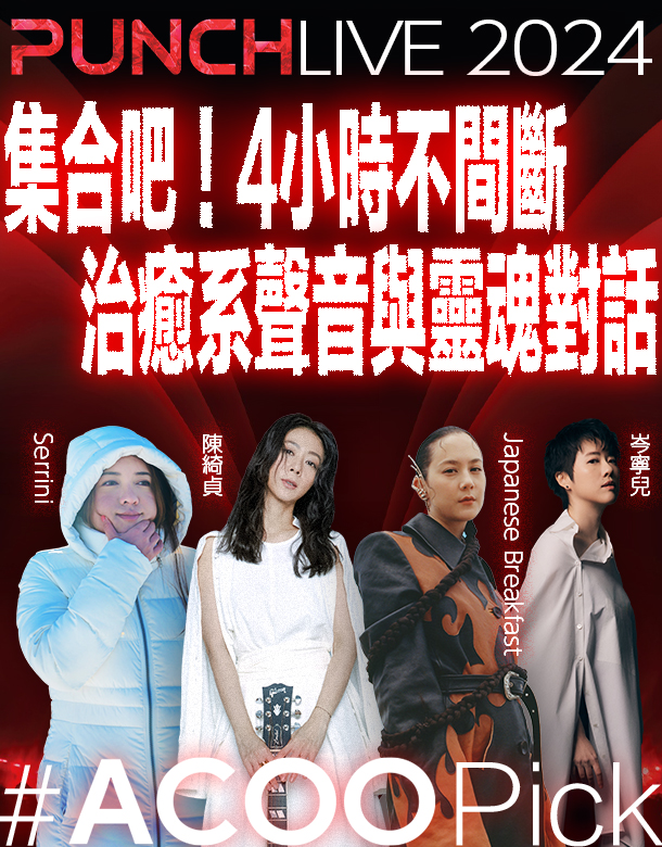去年是4個「壞男孩」,PUNCHLive今年來個360度大轉變,以「文青女神」,台灣的陳綺貞領銜,以清新和療癒的音樂風格為焦點。香港代表,就有大家非常熟悉的岑寧兒和Serrini。另一個表演單位《Japanese Breakfast》,對香港樂迷來說或許較陌生,但這個來自美國(是,美國,與日本毫無關係!)的獨立樂團主音,韓美混血兒Michelle Zauner,2016年以《Japanese Breakfast》為名錄製首張專輯,夢幻電子曲風頗受好評,使她逐漸走紅。2021年,第三張專輯《Jubliee》更入圍格林美最佳另類專輯獎。2022年,《時代》雜誌將她列為年度百大最具影響力的人物之一,來頭不小。 在旋律裏,隔絕一切紛紛擾擾,築起屬於我們的自由世界。如果你正迷失,正需要被溫柔鼓勵和爽朗的鞭策,6月29日邀請大家參與「PUNCHLive 2024」,感受一場由女性主導、展現現代女生力量和才華的音樂盛會。 如果你也想被治癒,密切留意ACOO,驚喜將不定時從天而降! 「PUNCHLive 2024」 日期: 6月29日(星期六) 地點:亞洲國際博覽館ARENA 時間:晚上7時半