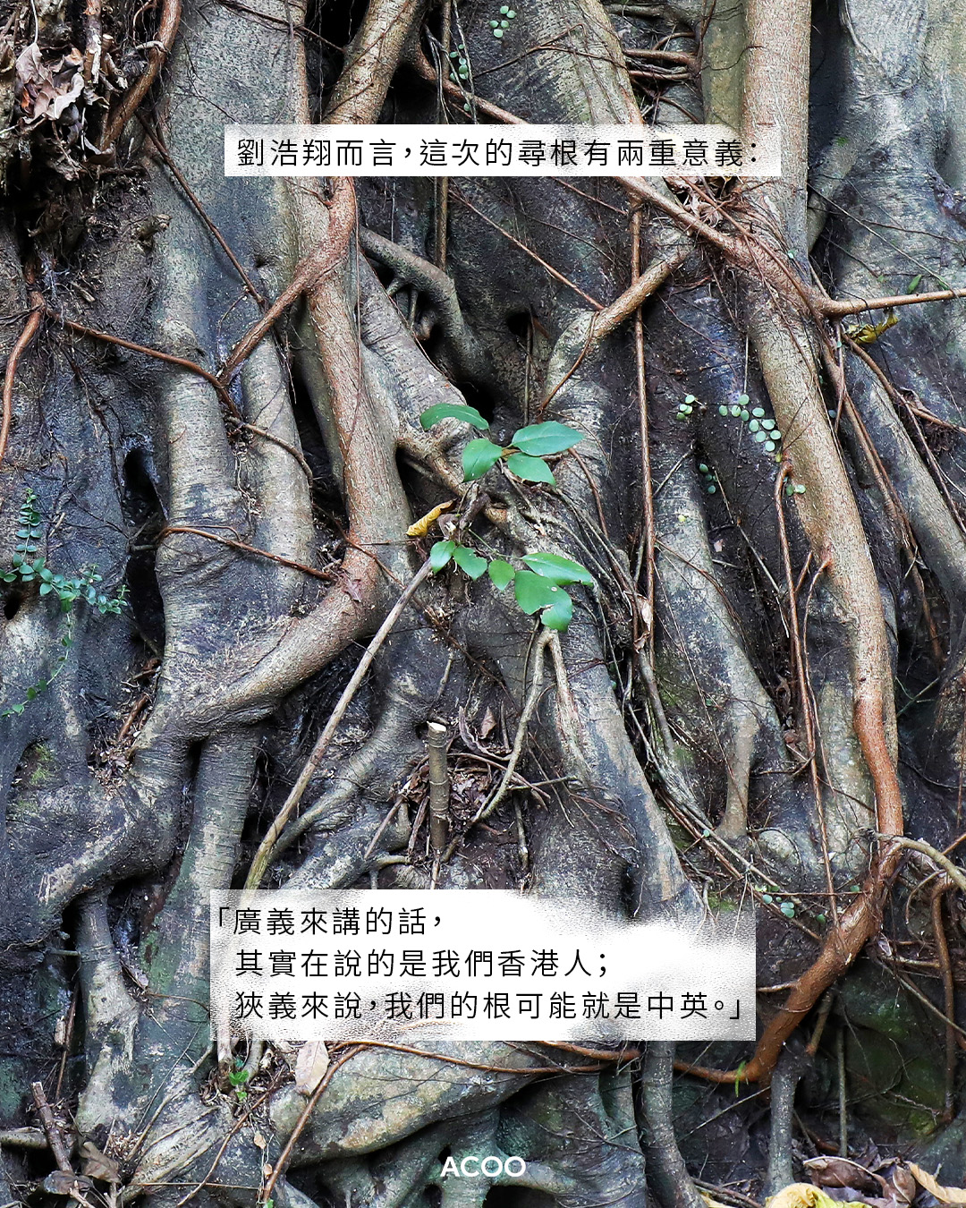 「我們是很特別的城市」,劉浩翔說:「我們有殖民過,我們有回歸,我們有不同階段的移民潮。」交錯的歷史,令我們的根更撲朔迷離。