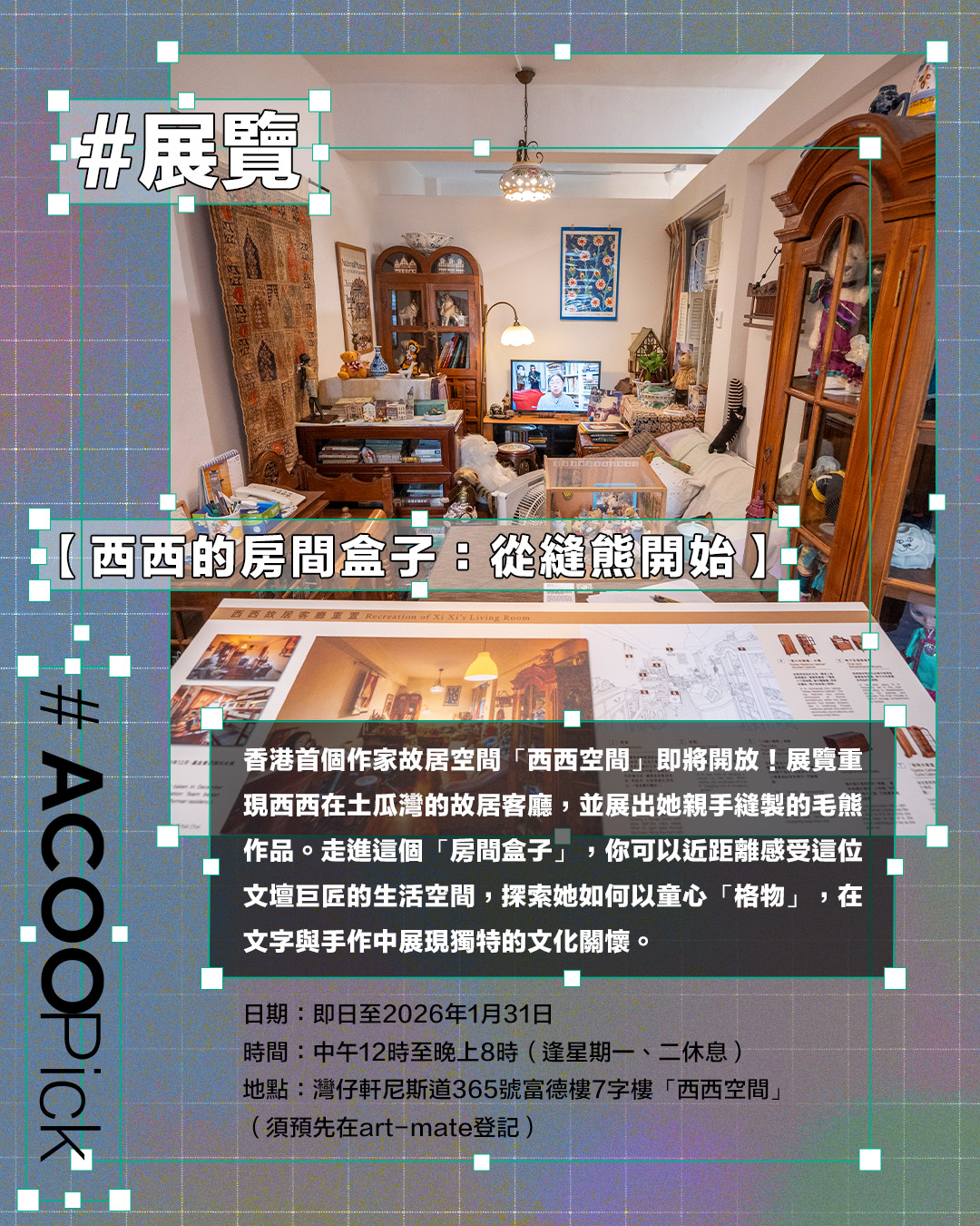 地點:灣仔軒尼斯道365號富德樓7字樓「西西空間」
