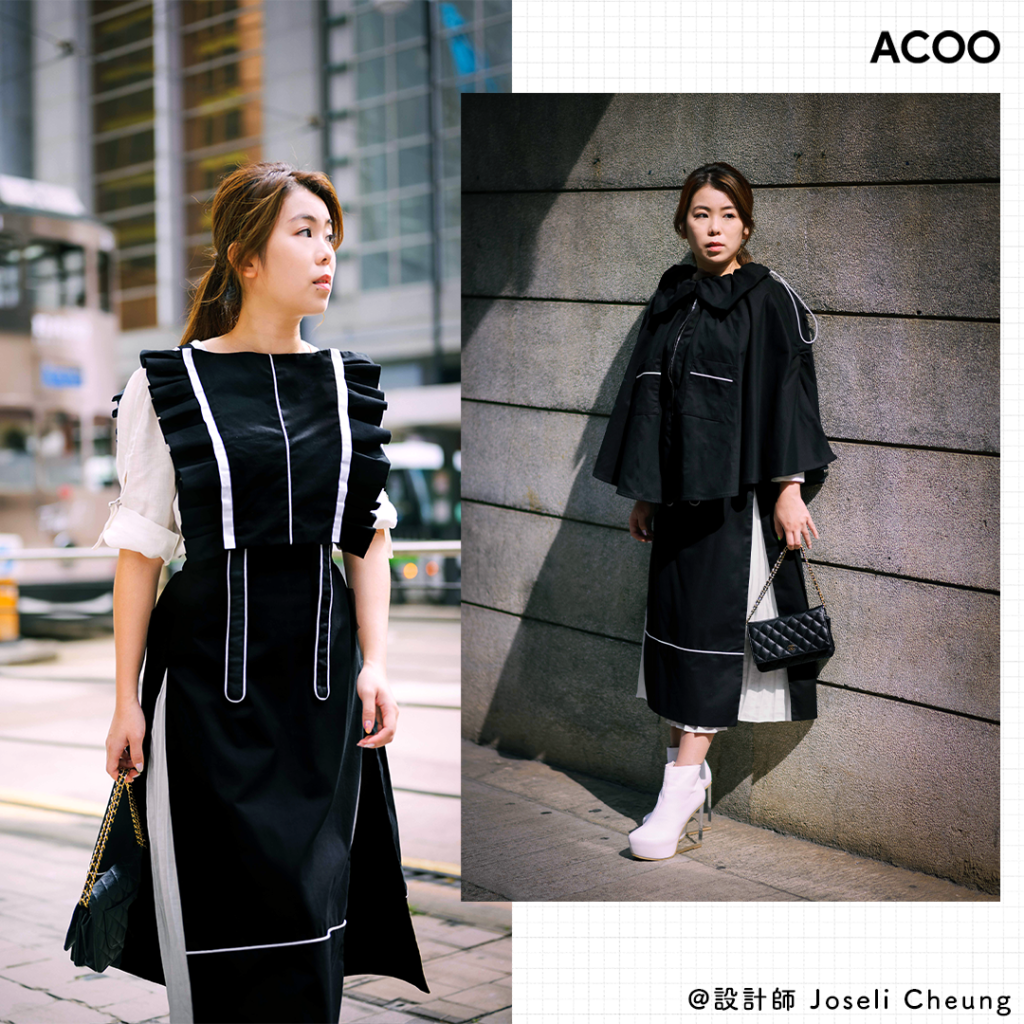 第二套入圍作品由中文大學藝術系碩士生張淑玲(Joseli Cheung)設計,她曾獲得多項設計大獎,如院長嘉許名單(Dean’s list)、世界技能大賽服裝製作比賽等。Joseli的設計作品全使用天然物料,包括純棉,同時顧及時尚、舒適,像是衣袖可按氣溫自由調節長度、上身的荷葉邊設計可變成斗篷等,增添衣服的質感,亦更耐看。
