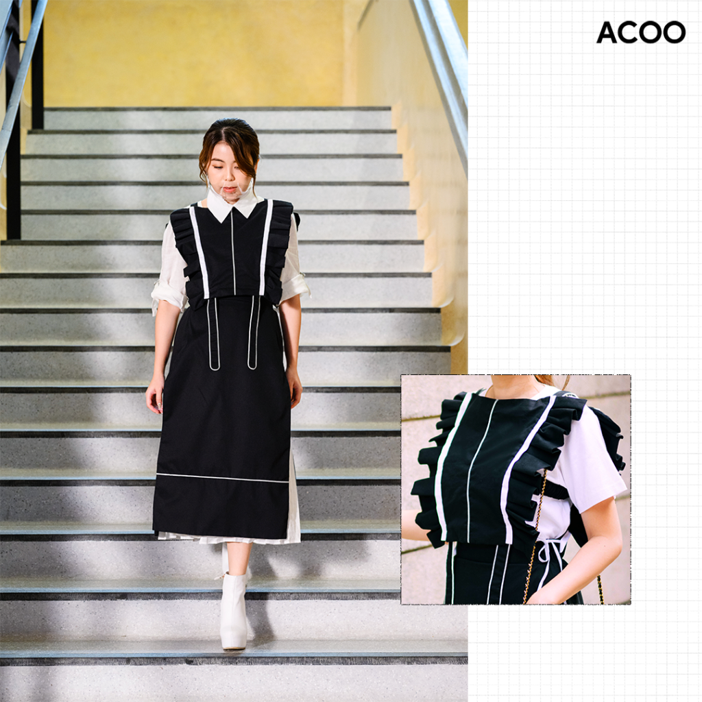 另外,為了適合不同狀態的女生穿着,所以裙腳、肩帶也有靈活設計,在懷孕初期到準備生產的不同身材也能靈活調節連身裙的細節,來最適合當刻的自己。