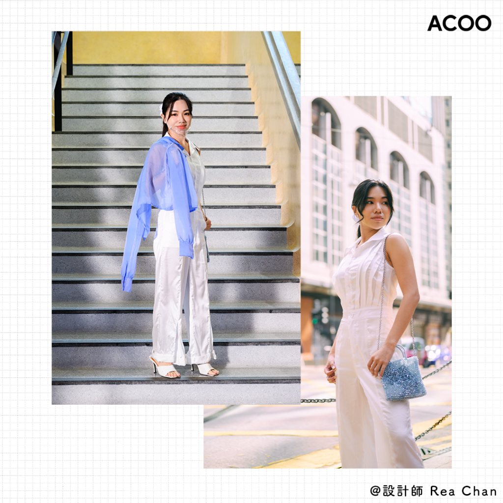 第三套入圍作品出自從小便喜歡時裝設計的Rea Chan之手。基於香港天氣濕熱,所以她特別選用輕薄的物料,像雪紡西裝外套、緞面連身衣等,在不造成負擔的情況下阻隔紫外光直接照射皮膚。此外,由於設計比賽主題以「打工仔」為主題,所以設計看起來既有休閒感,又不失正式的感覺。