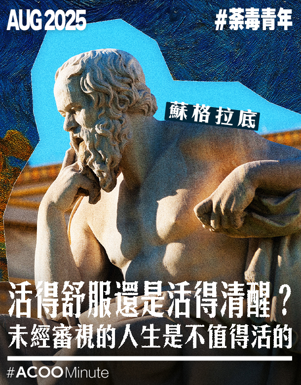 討論已久的哲學問題:「你會選擇做快樂的豬,還是痛苦的蘇格拉底?」滿足於飲飽吃醉容易極的快樂,還是愛思索便會福薄,兩種生活中,蘇格拉底選了後者。但於他而言,人生必須經審視,才能從夢遊狀態中醒過來,有意識地過生活。可能我們都需要蘇格拉底,來提醒我們,要懷疑人生。 蘇格拉底被視為西方哲學主要思想根源之一。他愛在街頭與人對話,發明出一套「蘇格拉底辨證法」,透過問一些簡單問題,並依對方的回答不斷追問,讓對方陷入自相矛盾的境地,迫令對方察覺自己的無知。他之所以到處找人辨證,是因為朋友查詢神諭,神諭說沒有人比蘇格拉底更有智慧。覺得奇怪的蘇格拉底便到處找那些比他聰明的人提問,發現他們只是自以為知道很多,實則根本一無所知,才悟出原來「唯一真正的智慧,是知道自己無知。」於是他就以此神諭為使命,透過這種看似「撩交嗌」的方式,喚醒人們認識自己的無知,才能追求真正的智慧。 在蘇格拉底辨證法中,簡單如勇氣、正義等概念,都沒有唯一正確的標準答案。蘇格拉底著重的是思考的過程,形容自己是精神上的助產士,幫助他人產生自己的思想。這些對話通常涉及價值觀或美德,有些年輕人在與他對話後,會開始質疑傳統的觀念,改變思考方式。不過更大部分人當然是感到被挑戰冒犯,蘇格拉底於是得罪了不少人,加上當時雅典經歷完戰爭和政治動盪,這種挑戰傳統的態度,更是刺痛了權威的神經。於是蘇格拉底被控告受審,罪名是荼毒青年和對神不敬,最終被判處飲毒酒賜死。 「未經審視的人生是不值得活的。」為能讓更多人思考甚麼是美好的人生,即使帶來殺身之禍,蘇格拉底審視後仍然認為是該做的。如果連自己相信的價值是甚麼也沒有弄清楚,那又怎麼知道自己追求著怎樣的人生?那就像夢遊般,無意識地生活著的人。蘇格拉底其實在告訴年輕人,切勿不假思索地過生活。社會上人人信服的價值觀,也不是一定就是對的;要怎樣過生活,也從沒有標準答案。要保持思考,才能避免自己混沌迷糊過完一生,過上更值得活的人生。 蘇格拉底之所以是痛苦的代表,因為在思考的過程中,人會對既有的觀念產生困惑,陷入像分娩前的陣痛,但這也正代表新的知識即將誕生。如果你對生活感到迷惘,可能正因為你對人生有思考,處於誕生新思想的陣痛之中。一旦成為痛苦的蘇格拉底,可能人生會出現不斷又不斷的陣痛。那要選擇成為快樂的豬還是痛苦的人,還是你自己的選擇。(但當你思考這個問題時,是否也正在審視自己人生?) 文字:林三 @lam.three 設計:Owen @wai.ho.98 ——————— In ACOO, you can get refreshed in #ACOOMinute. #蘇格拉底 #蘇格拉底辨證法 #哲學 #懷疑人生