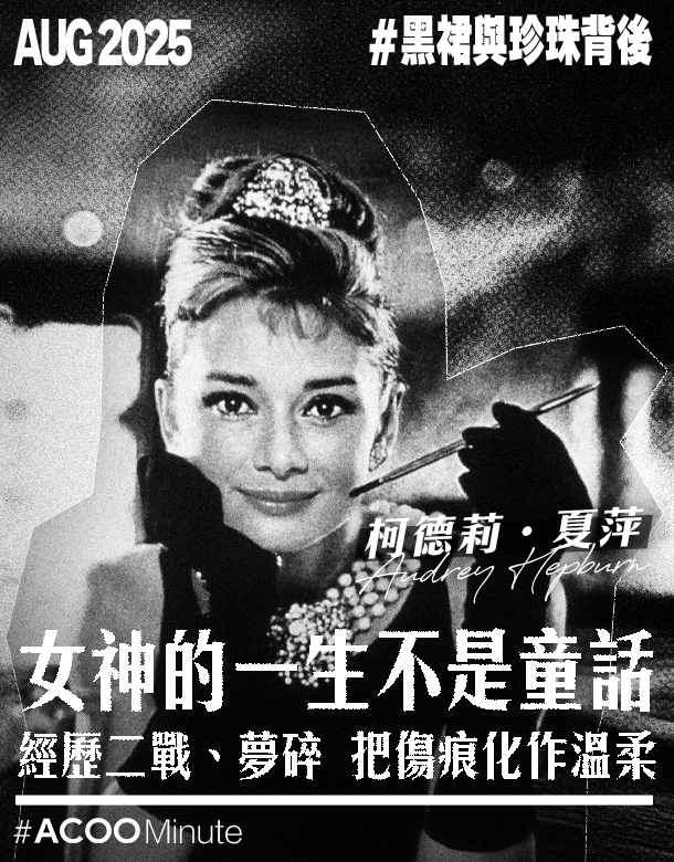 柯德莉夏萍在電影《珠光寶氣》中,身穿黑色禮服配珍珠頸鏈,高盤髮髻,戴上長手套,輕輕托腮的經典照片,驚艷眾生,至今仍不時有女星模仿她在戲中的造型。她除了氣質出眾,亦演技精湛,獲得美國演藝圈大滿貫四大獎:奧斯卡金像獎、艾美獎、格林美獎及東尼獎。世人眼中閃耀的她,其實人生並不順遂。她經歷過戰爭洗禮、夢想破碎、情路挫折,但仍保持優雅善良,成就人美心善的永恆女神。 柯德莉夏萍出身貴族家庭,曾過著優渥的生活。二戰時期,她家中財產被充公,當時身處的荷蘭亦被納粹佔領,處於大飢荒,導致她長期營養不良,患上貧血、黃疸病等。她本來夢想成為首席芭蕾舞者,曾在著名的芭蕾舞學校接受專業訓練,卻因為營養不良影響了體格,加上身高過高,無法當上首席舞者,被迫放棄夢想的她大受打擊。不過這亦成為她走到演藝圈的機遇。為了生計,她轉為做模特兒,並參與歌舞團的演出,期間被發掘,獲邀演出百老匯舞台劇,亦同時被電影公司賞識,出演《金枝玉葉》的女主角。她首次在電影中擔正,便大受歡迎,24歲即奪下奧斯卡最佳女主角獎和金球獎最佳女主角獎,一舉成名。其後的《珠光寶氣》、《窈窕淑女》等作品,亦令她再創高峰,成為全球巨星。 「我的人生不只是一個童話故事,我也曾經歷過不少困難時刻,但無論面對甚麼困難,最終我還是得到了獎賞。」她的芭蕾夢碎,但反而間接令她在演藝界創出一番成就。在感情方面,她年幼時父母離異,被父親拋棄,長大後一直夢想建立自己的家庭,但兩段婚姻均離婚收場,亦經歷多次流產,對她打擊甚大,一度陷入抑鬱狀態。不過她仍然相信愛情,在51歲時遇上人生伴侶,一起走到生命盡頭,亦與兒子關係融洽,收獲滿滿的愛。 即使生命給了她難關,但她沒有讓困難奪走她的樂觀善良。兒時遭戰火與飢餓折磨的她,晚年擔任聯合國兒童基金會親善大使,多次前往非洲等災區實地探訪,用她的影響力令國際社會關注貧困兒童,實行她給自己的使命。她說:「種下一座花園,就是對明天懷抱希望。」儘管受過傷痛,但她仍抱持希望,在世間種下一顆顆善良的種子。柯德莉夏萍出眾的美貌令人難忘,但她的美不單來自外表,她善良堅強的靈魂,散發著更耀眼的光芒。 文字:林三 @lam.three 設計:Owen @wai.ho.98 ——————— In ACOO, you can get refreshed in #ACOOMinute.