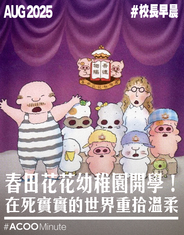 麥兜是大家的童年回憶,但除了主角麥兜以外,其他角色都同樣盞鬼有趣。在春田花花幼稚園中,校長、Miss Chan,以至一班低B班的同學包括麥嘜、阿May、阿輝、菇時等,各有性格特色。你還記得小時候最喜歡哪個角色嗎? |傻更更地堅持的校長 有點無厘頭的校長,常常以招牌的潮州口音向學生訓話,教學生一些奇奇怪怪的東西,但為了幼稚園,他也真的仆心仆命。有集電影講述幼稚園瀕臨倒閉,負債累累,他抱著「得就得,唔得就返順德」的心態,四處打工賺錢,做保安、侍應、炒栗子,甚至累得昏倒,最後想到成立春田花花合唱團出騷賺錢的妙計。校長一直熱愛音樂,希望將音樂的力量帶給小朋友。但他性格腍善,三番四次受騙,幼稚園倒閉了幾次,由冬日鴨鴨、夏日雞雞、秋天蟬蟬做到春田花花,每次他都會想辦法堅持下去,延續他的夢想。 |失魂但可靠Miss Chan 「低B班」的班主任Miss Chan有點失魂,常常忘了自己點了誰的名。她愛哭愛笑,熱愛唱歌,志願是做下一個王菲或者陳慧琳,最愛錫是一班同學。當春田花花合唱團被奸狡的經理人走數時,她霸氣的帶領大家去收數;當校長忙於為幼稚園經費打工時,Miss Chan就一個人打理整間幼稚園,相當有情義。她亦相當溫柔,即使同學們說長大後想做的社會棟樑,是幫泡沫咖啡吹泡泡、幫人噒雞腳,她都不會潑冷水。 |醒目仔麥嘜 與麥兜非常似樣的麥嘜,在麥兜電影中只是配角,但原來麥嘜才是最初的主角。最初在周刊上連載的,是麥嘜與他幼稚園同學的故事,而麥兜只是麥嘜的表哥,後期才出場。麥嘜本來是大嶼山豬場裏的一隻豬,有一晚打雷,豬場的豬走散了,麥嘜就被當時來旅遊的人類夫婦帶回市區收養。與麥兜相比,麥嘜的家庭較富裕,人亦較為聰明,有時能滔滔不絕地說莎士比亞,但有點懶醒認叻。後來作者覺得蠢蠢地、較為草根的麥兜,可塑性更大,更適合成為電影的主角。麥兜電影爆紅後,麥嘜就默默地退為配角。 |春田花花幼稚園同學仔 當然少不了一班可愛的同學仔。為人著想的阿May,見麥兜默書的字寫得太潦,就大方送擦膠給麥兜;當麥兜問些無厘頭問題,例如「我懶啲定屎忽懶啲」時,阿May都會認真回答。小小的烏龜阿輝是大家的忠實朋友,化身「情迷海龜Pizza」時,遇見哭泣的菠蘿油王子,會從身上的pizza撕下一條蟹柳偷偷地請他食,又鼓勵他追夢。還有與May經常孖公仔出現的阿June、常被誤會是鴨的菇時、因為可愛的模樣而被誤會是女孩的家貓得巴,都各有可愛之處。 春田花花幼稚園的校友長大後有些成為了古惑仔、豬肉佬,都不是大眾眼中的出色的社會棟樑,但在母校需要時,他們會站出來。幼稚園的每一個人,都未必是最聰明能幹,甚至有點傻更更。但他們的真誠天真,才最能撩動我們的心房。在這個死死實的世界中,令我們軟弱的時候,會多一點堅強;硬,也會有多一點溫柔。 文字:林三 @lam.three 設計:Owen @wai.ho.98 -------------------- In ACOO, you can get refreshed in #ACOOMinute.