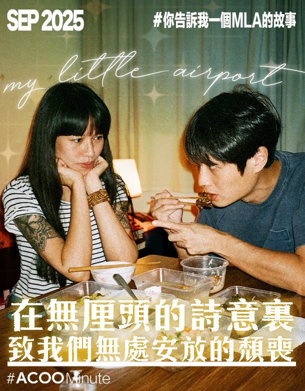 被視為文青icon的獨立樂隊my little airport出道超過20年,仍然受年輕樂迷的追捧。他們呢喃般的輕柔唱法,偶爾配上詩歌朗誦或獨白,古怪無厘頭的歌名,貼地坦率但充滿詩意的歌詞,建構成他們獨有的風格,多年來在本地的獨立音樂圈佔一重要席位,連梁朝偉也被他們的音樂迷倒。my little airport之所以受年輕人喜愛,是因為他們音樂裡輕描淡寫地訴說的那些唏噓與愁緒,與經歷青春陣痛的我們產生了共鳴。 my little airport 由阿P與Selene(舊名Nicole)於2003年組成,二人在大學相識,曾在睡房錄製了50張demo CD,以$18向同學兜售,歌曲圍繞身邊朋友的故事,翌年加入唱片公司正式出碟。他們的歌曲大多以個人小故事角度出發,主題圍繞日常瑣事、感情迷惘,以至社會議題。早期作品如《邊一個發明了返工》等已令他們在獨立圈小有名氣,及後於2015年憑《美麗新香港》獲金像獎最佳原創電影歌曲提名,更為人熟知。 主力創作的阿P曾說,創作並不是想用音樂表達甚麼,純粹是像寫日記般,用來宣洩情緒。阿P受尹光描寫生活態度的風格形響,喜用小人物的真實生活為題材,認為他們很多時對生活都有種無力感,能夠展現黑色幽默。就像《西西弗斯之歌》講述馬會電話投注中心兼職員工,透過作弄急躁的客人,在乏味的工作中獲得快感,猶如西西弗斯以享受推石頭來對抗懲罰一樣。my little airport像是個有趣的朋友,會跟你分享朋友的故事,充滿各種奇奇怪怪的想法,但有時又蘊含哲理。 my little airport由大學時期開始創作,歌曲紀錄著他們的成長,由初入社會的迷惘憤世、社會氣氛下的困惑壓抑,再經歷感情的甜蜜、無疾而終的遺憾,到回望舊時光的惆悵,都與我們的成長軌跡或多或少重疊。歌曲裡的故事都藏著真實私密的情感,帶來的觸動更深。像是一句「我會在IG看你一生的轉變」,貼地的形容,道出無盡唏噓。 他們由廿幾唱到四十幾,曲風多變了很多,歌曲主題亦隨著年齡增長有所改變。但不變的是,他們的作品仍然非常貼近年輕一代的情感,敏銳細膩地捕捉了時下年輕人的精神面貌。能夠做到這樣,可能只是因為真誠。在輕快的旋律中,mla以玩世不恭的態度,訴說著青春愁緒。我們在這些歌裡,感受到有人能夠明瞭這些頹喪的情感,找到情緒出口。 文字:林三 @lam.three 設計:PO @p12_o28 -------------------- In ACOO, you can get refreshed in #ACOOMinute.
