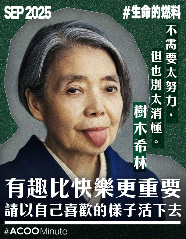 如果有看過是枝裕和的電影,必然會記得他的御用嫲嫲樹木希林。戲中她以慈愛但有點毒舌的形象,將嫲嫲和母親的角色演得維肖維妙。是枝裕和曾說,如果要總結樹木希林的魅力,那就是「有趣」。有點叛逆的她,個性瀟灑豁達,一生只追求過得有趣,「我想要的不是快樂,而是覺得有趣。人生在世,若不覺得有趣,就很難走下去。」 樹木希林就是個有趣的女子。她本來的藝名是「悠木千帆」,憑幽默的形象及精湛演技已積累一定名氣,卻在出道逾十年後,於一次綜藝節目的拍賣環節中,因為沒有甚麼可以拿出來拍賣,乾脆將自己的藝名賣掉,然後翻字典從50音中挑了一組,改名為「樹木希林(KiKi KiRin)」,完全體現了她隨心所欲的瀟灑性格。 她一生有過兩段婚姻,第一段婚姻雖然穩定,卻平淡得她受不了;再婚對象是搖滾歌手內田裕也,只短短交往五個月便閃婚,婚禮上更前衛地穿上牛仔套裝當婚紗,愛得轟轟烈烈。不過,她婚後遭到丈夫家暴,僅僅一起生活約一年半,就分居各自生活。儘管如此,樹木希林仍深愛對方,堅拒離婚,雙方分居後仍保持聯絡,見面時還能聊個不停。說她戀愛腦嗎?但她也只是愛得坦蕩蕩,「如果有來世,我會時刻警惕自己,不能再與這個人相見。因為要是再相遇,我仍然會愛上他,再次度過狼狽的一生。」 面對生老病死,她一樣坦然面對。對於老去的容顏,她幽默地說:「這皺紋是我好不容易長出來的,不顯示出來太可惜。」晚年她病痛纏身,2003年她因視網膜剝離左眼失明,翌年再患上癌症,但她以淡然的態度面對,毫不忌諱死亡,曾在廣告中以「至少要以喜歡的方式死去」為主題,拍下模仿名畫《Ophelia》的照片。病痛無阻她對戲劇的熱愛,她所參演的是枝裕和電影,包括《橫山家之味》、《小偷家族》等,都是在她離世前十年拍的。她說,生病令她醒悟了很多事情,更豁達地說:「若沒有醒悟,豈不是太浪費了?既然碰到了這種事,卻只是怨天尤人『怎麼會這樣』,那可就虧大了。」 有次被問到給年輕人的建議,樹木希林回答:「請不要問我這麼難的問題。如果我是年輕人,老人家說的話我通常是不會聽的。」對於一生率性灑脫的她,這個答案非常切合她的性格。在她的眼裏,人生最重要是自己覺得有趣,對於一切的事物,她都沒有甚麼非如此不可的鐵律,更曾自嘲:「就拿我的長相來說好了,就是出了甚麼錯才會長成這樣。不過,我就是活用這種不完美,一路走過來的。」今年是樹木希林逝世7周年,她的一生也許並不完美,但肆意地活過,已無須遺憾。 文字:林三 @lam.three 設計:Owen @wai.ho.98 -------------------- In ACOO, you can get refreshed in #ACOOMinute.