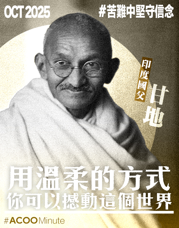 聯合國將國際非暴力日定在10月2日,那天是印度國父甘地的生日。歷史上第一個大型全國性的非暴力抗爭運動,普遍被認為是由甘地發起的。他曾在南非挺身對抗針對印度裔的種族歧視,回國後投入印度的獨立運動長達30多年,期間多次被捕入獄,最後見證印度成功獨立,脫離英國的殖民統治。他所主張的非暴力不合作抗爭,深深影響了後來的民權運動,包括美國及南非的民權運動領袖馬丁路德金及曼德拉,都曾表示受到甘地的啟發。他以愛為信仰,堅信溫柔的力量:「用溫柔的方式,你可以撼動這個世界。」 甘地出生於印度一個中上階層的家庭,父親是當地的官員。他曾到英國留學修讀法律,畢業後回國執業,卻發展不順,後來受邀前往南非擔任律師。當時南非的種族歧視非常普遍,甘地有天乘火車,明明買了頭等車廂的車票,卻被要求轉到三等車廂,拒絕這種不公待遇的他,竟被強行拖下火車,在寒冷的火車站等了一晚。這件事激發了他踏上爭取平權之路,在南非的21年間,他組織印度社群遊行、罷工,推行非暴力抗爭的理念。期間因參與抗議活動而被捕,英國政府在輿論壓力下釋放他,此後甘地逐漸成為國際知名的非暴力抗爭領袖。 當時印度被英國殖民統治,同樣遭受各種不平等待遇。46歲之時,甘地獲邀從南非回國,協助印度的獨立運動。甘地的抗爭方法,是各種的不合作運動,包括抵制英國貨、罷工、不入公立學校、不到法庭、不入公職等,這種看似消極抵抗的方法,卻對殖民政府構成了挑戰,並引發各界壓力,迫使英國政府讓印度逐漸發展自治體制。最終在二戰結束後,英國因戰爭消耗嚴重,對殖民地的控制力大幅削弱,加上印度國內強烈的獨立運動壓力,促使英國放棄印度的殖民統治,印度於1947年成功獨立。 挺身而出,有時會為自己招來風險與苦難。但甘地卻將自願受苦受難視為非暴力抗爭哲學的一部分,主張即使面對攻擊亦不要還手,才能打破以暴制暴的循環,喚醒人的良知。他亦以身作則,多次為了抗議而絕食、入獄,成功激勵大批民眾加入抗爭,展示手無寸鐵並不代表軟弱無力,反而也是一股強大的力量。雖然甘地最後被印度教狂熱分子暗殺身亡,但他一生堅守的非暴力理念並沒有消失,而是成為重要的精神遺產,繼續對後世留下深遠影響。 後人尊稱甘地為「聖雄」,但甘地其實也只是人。對於他主張的和平手段,有人會覺得他過於理想化、天真離地,放諸他方未必適用。正如所有歷史事件的發生,都需要天時地利人和配合,印度獨立絕非甘地一人的功勞。但他敢於反抗不公的性格,以及能夠在苦難中堅守信念的意志,已足以證明,溫柔也可以是種強大的力量。 文字:林三 @lam.three 設計:PO -------------------- In ACOO, you can get refreshed in #ACOOMinute.