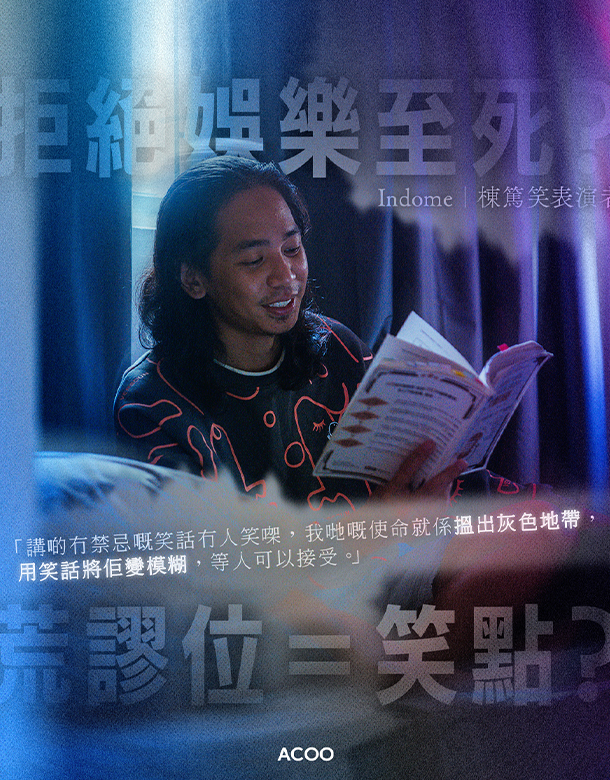 在社會近年重大變遷下,集體經歷了低谷,人們對生活多了思考,甚至對娛樂也有了標準,開始拒絕「娛樂至死」。然而,這並不是港人第一次說不——在80、90年代,因當時的社會同樣面對着不確定,棟篤笑(Stand-up comedy)回應時代出現。 香港棟篤笑之父絕對非黃子華莫屬,甚至連「棟篤笑」之名也是出於其筆。一般港人即使不曾入場,也總有聞說其金句,例如「畀份糧你,一半係畀你要嚟做嘢,另一半係要嚟受氣嘅。」一句one-liner,完全戳中大家的笑點和痛點,從笑話中揭示人性、社會現象,而不是笑完就完,正是棟篤笑的魅力。曾幾何時,香港棟篤笑演出也是「爭崩頭」的一票難求。 「悲哀嘅係,香港對廣東話棟篤笑需求好細,反而喺外國,可能係一種情懷,佢哋會好treasure呢件事。」不論是一個人或是團體表演,即使台下小貓三四隻,甚或全席空位,中印混血兒Indome仍然享受在台以笑話來與大家對話。在黃子華封咪後的後棟篤笑時代,還剩下多少能讓人笑中帶淚的笑話? 文字:Hoiyan @seamouse_hoiyan 攝影:Andrew @andrew_bangchan 設計:Owen @wai.ho.98 |誰是Indome 「Indonesia加上me,就係印尼嘅一個我。」他是香港土生土長的中印混血兒,因覺得行走江湖要有一個很強記憶點的名字,而他的本名都不太符合要求,便從同鄉營多撈麵中靈機一觸。最初的時候,他還不習慣何時該使用這藝名,直至一次錄節目時,撰稿員自然的喊:「Hello Indome!」頭頂的燈泡亮起來,Indome說:「佢最記得我呢個名,嗰刻開始唔再諗自己係邊個,Indome is my name。」 Indome在疫情期間失業,多了時間重整生活,才找到棟篤笑。不過他自言從小也會被稱讚有趣,而他亦樂於成為焦點:「我性格就係attention seeking,知道件事可以得到關注,就會做嗰樣嘢。」也因為同一個原因,改變了他回答「你係咩人」的答案,即使廣東話說得比印尼話流暢,出社會後的他總會自稱是印尼人:「讀書嗰陣會話係香港人,後來發現講係印尼人會特別咗。」所以,一樣在鎂光燈下的職業,也只有棟篤笑表演者最能吸引他,笑言:「演員、主持嘅焦點係角色同典禮,棟篤笑嘅關注喺晒自己度,全部觀眾都緊聽你嘅故事,呢個滿足感係最大。」 |屢敗屢戰的棟篤笑精神 當初,Indome在FB看到陳樂添的棟篤笑課,便報名上堂,「棟篤笑同唱歌都係易學難精,你可以唱得好叻,但唔代表人哋想聽你唱,要搵到character。」完成課程,所有同學都會參與一場畢業演出,Indome還邀請了一眾親朋戚友前來。上台前,因為深知自己沒有記性,便預先把「提場」寫在手掌,萬事俱備,唯正式演出仍與幻想中的情景充滿落差,他飲恨似的自嘲:「上台已經開始唔記得,再望一望自己隻手,因為緊張出汗,所有字都化晒。」原本預計8分鐘演出,一下子大縮水變成3分鐘便鞠躬下台。 其實,所有笑話能正式搬上舞台前,大概經歷8個月的修正,「呢段時間,喺Open Mic去講呢啲試驗性笑話,不停改同試。」試笑話的過程非常重要,同一個笑話對不同性別、年齡的觀眾,也會有不同的效果,表演者能根據反應作出更精準的調整,也能考驗自己救場的能力,Indome分享表演者阿科的殺手鐧:「呢個笑話喺我個腦入面好笑啲。」不管每場Open Mic有多少觀眾,他們很是珍惜每次機會,只因為「現在一定比第一次好,今次一定比昨天好」,高強度的肌肉訓練才能正式舞台中綻放朵朵笑花,「我哋最勁嘅未必係寫笑話,反而係厚臉皮,呢個就係棟篤笑表演者屢敗屢戰嘅精神。」 |荒謬就是笑點 怎樣才能無窮無盡的生出笑話?「我通常都係以生活經歷為主。」日常中,與女朋友、家人、寵物和新聞都是取材來源,只要嗅到可能性,Indome便會用電話錄音記下,而故事的有趣元素就是荒謬點。雖然荒謬點總是遊走在敏感位,但Indome則認為這就是表演者的使命:「講啲冇禁忌嘅笑話冇人笑㗎,我哋就係要搵出灰色地帶,用笑話將佢變模糊,等人可以接受。」Indome父母和大哥是牧師,性取向在基督教中尚為敏感議題,而「懷疑性取向」的一組笑話,正是其大膽的嘗試。 除此之外,Indome的棟篤笑團體「笑旅時代」,每星期也會落地做Open Mic,還會在IG進行《笑時一周》的直播,四人以時事新聞隨意發揮,「可以訓練點樣喺一件事演繹到唔同角度,又可以engage到觀眾。」他隨即保底說,撞車、司機與乘容的爭吵,甚至貓咬貓也是時事,並非政治,若這樣也被警告的話,笑言自己絕對是已經紅了一半:「至少做嘅嘢有啲影響力。」 |沒有次文化的香港 「香港棟篤笑係落後啲,不過依家香港好多嘢都比較落後。」Indome直言港人對棟篤笑的需求很低,反而海外港人更會珍視,「可能大家真係好忙,主流文化外,唔會去搵其他次文化,但呢啲正正係一啲artists嘅成長。」看到其他前輩如陳樂添、阿V,即將到澳洲參加「Comedy Festival」,Indome更是堅定心中夢想:「如果喺呢度打唔到一片彩虹,就試下由外面打返嚟。」 這條路注定又長又遠,但他就是上了癮的為這個舞台着迷:「喺台上嗰種star嘅感覺係取代唔到。」談着棟篤笑的每一刻,Inodme七情上面,語氣生動,還有那雙熱情滿瀉的眼眸,就像他正站在聚光燈那束光下,正享受在萬人的笑聲之中,自信的說着一個又一個的笑話。