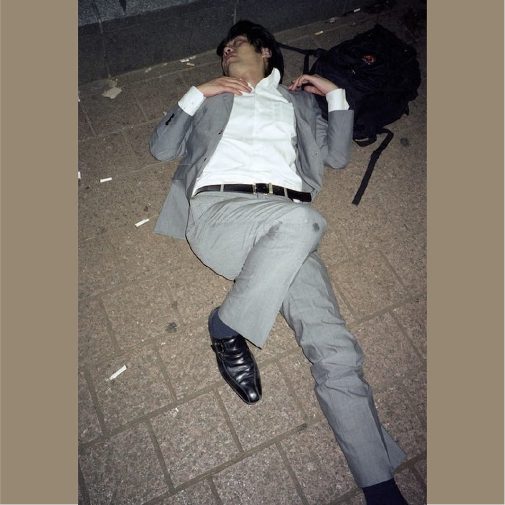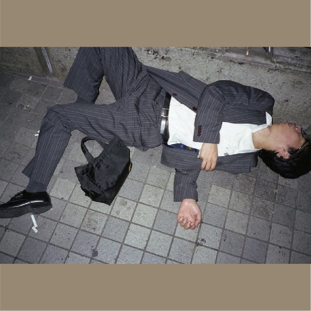 波蘭攝影師Pawel Jaszczuk紀錄了在日本街頭出現的光景:上班族穿着畢挺西裝,卻酩酊大醉、面頰通紅地在街頭入睡……有打工仔寧願以公事包為枕頭,令自己在路邊睡得更舒服,也捱不到回家的路程。日本人向來給予人整齊、有儀態的感覺,但每每在入夜後的街道上都不難看到這些喝醉了的打工仔在路邊休息。