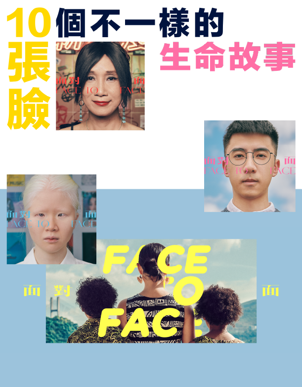 每天走在路上都會遇見千百個陌生人,迎面而來擦肩而去,匆忙之間總是來不及認識彼此。由藝文機構「創不同」(MaD Asia)協作主辦的《Face to Face面對面》展覽音樂會在K11 Art Mall舉辦。10組創作者是公開招募,由周耀輝領軍項目,有唱作歌手黃妍、王嘉儀、Kendy Suen、Jabin Law、音樂人Goro、填詞人何秀萍、王樂儀及曾入圍金曲獎最佳音樂錄影帶獎的影像創作者MO@YAMANYAMO帶領,以10個不同文化背景的人物作主題,如香港足球代表隊球員簡嘉亨、前殘奧馬術運動員Bryan、跨性別性工作者琦琦、外傭Alicia、無性戀者康和舞台劇演員宋本浩等。創作者與他們進行深入訪談後,再以文字、音樂和MV影像創作來分享故事,希望實驗嘗試用流行音樂反映社會多元的無限可能,同時為城市增添溫暖。 此外,所有原創音樂作品已在各大串流平台上架,包括Spotify、Apple Music、KKBOX及YouTube等。 1. 跨性別性工作者 – 琦琦 《兩顆》|曲/唱:黃曦桃 TAOTAO 詞:陳銘洋 編:卓家誠 Daniel Toh 音樂錄像:麥寛郁 2. 鵝頸橋打小人 – 趙姑 《小》|曲/唱:MAIA 慶孫 詞:黃凱逸 編:Andy Chan 音樂錄像:Harry Ng 3. 白化症患者 – Eli 《化》Bee Mad|曲/編/唱:Arttry ThaiJai 蔡柏明
