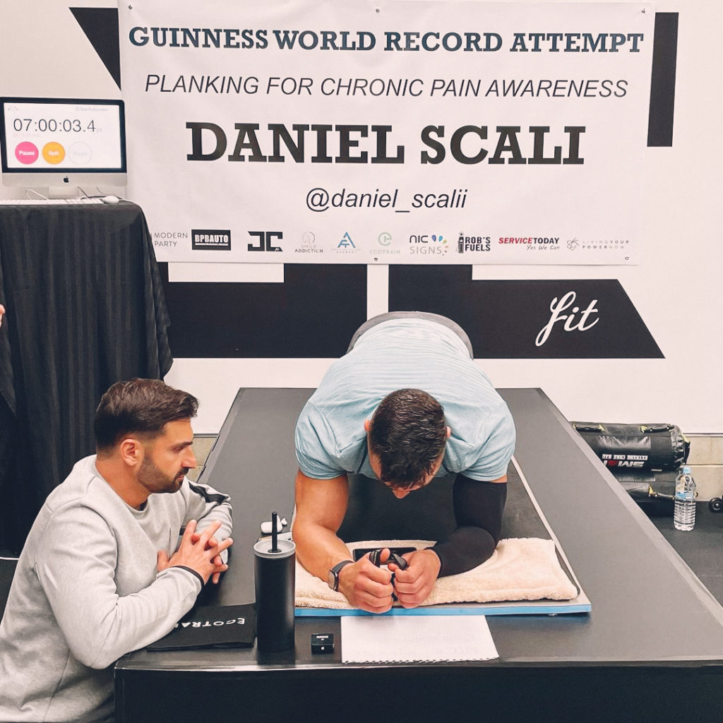 Scali 不是天生的運動健將,自今年才投入平板支撐訓練。而事實上,他甚至沒有一副健康的身體。自 12 歲從床上墮下後,他的左臂骨折,並確診「複雜性局部疼痛綜合症」(Complex Regional Pain Syndrome;CRPS),是一種罕見疾病,大腦會發出錯誤訊號,令患者感到與受傷程度不乎的痛楚,只受少許壓力或輕輕觸碰,都會感到莫大痛楚,Scali 指出,「任何柔軟的觸摸、搔癢、風,也會讓我感到不適。」