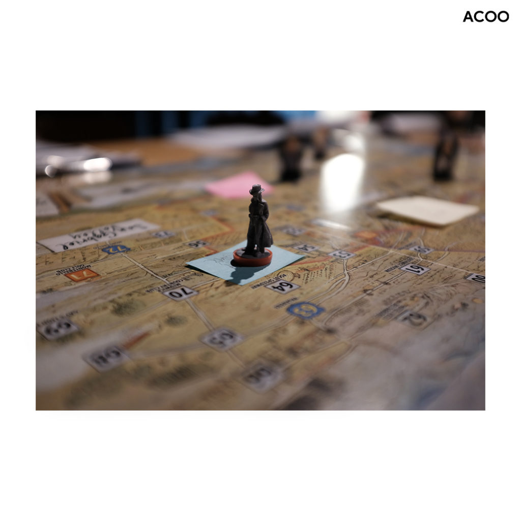 踏進灣仔富德樓的「漂流部落」,那昏暗的黃色燈光、擺設、背景音樂,把時空一瞬間轉移到50年代那個充滿黑暗與暴力的洛杉磯。正當筆者想掏出卡片打招呼時,黃靖(@jingwongmusician)已經入戲道:「歡迎這位新的探員!提醒你,大sir很喜歡探員衣衫整齊,我建議你打個領呔、戴頂帽子!否則大sir生氣,我可不確保會發生甚麼事!」,讓筆者初次體驗道,啊,原來「沉浸」就是這個感覺呀。收起現實中的卡片,戴上由漂流部落準備的帽子、領呔,筆者決定好好飾演一個新丁洛杉磯警察局重案組探員,投入這場全新的遊戲劇場。