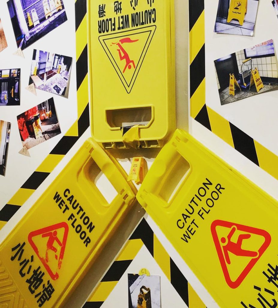 小心地滑鑒賞師與第一塊告示牌邂逅於2018年,當時他在鑽石山看見一塊卡在牆壁旁邊的告示牌,覺得很有趣,便開始了觀察牌子之旅。「小心地滑,就像千百樣人,千百種外貌和動作。它不一定永遠以一樣的位置和狀況示人。」鑒賞師對告示牌的感受,慢慢化成他的藝術作品,更成為展品。