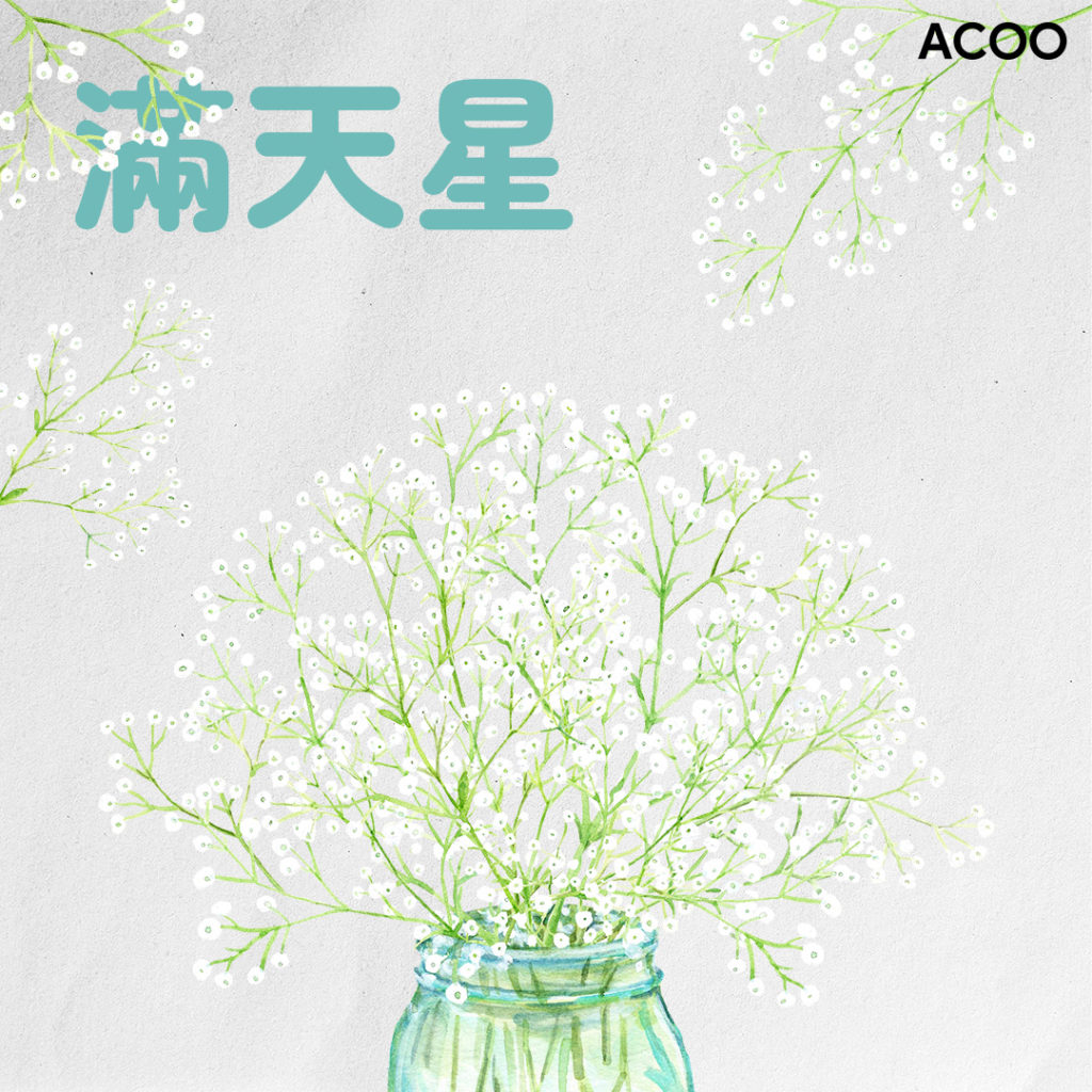 擁有淒美故事的滿天星的花語是思念你、真心喜歡你,擁有你讓我相當快樂。